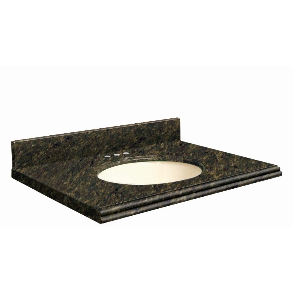 Upgrade your bath with a pre-sealed Uba Verde granite vanity top from Transolid. This 37 x 22.25 in top includes a 4-in backsplash and a centered, undermount vitreous-china oval sink in biscuit, delivering durable, stain-resistant performance and timeless style.