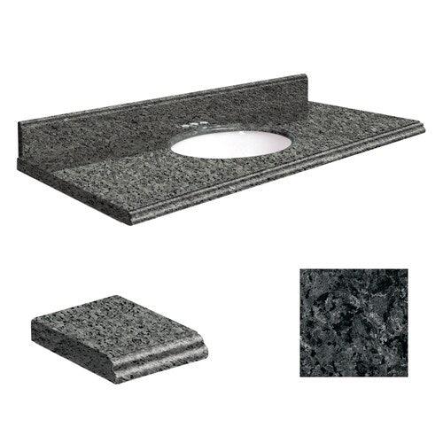 Upgrade your bath with a 43-in Transolid vanity top crafted from 1-1/4-in thick natural Blue Pearl granite. Pre-sealed for stain resistance, it includes a 4-in matching backsplash and a centered white oval undermount vitreous-china sink with overflow.