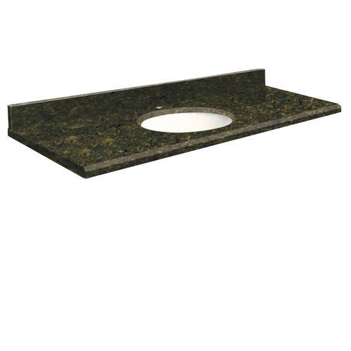 Elevate your bath with Transolid’s natural Uba Verde granite vanity top, pre-sealed for durability and stain resistance. This 61-in top includes a 4-in matching backsplash and a centered undermount oval vitreous-china biscuit sink with overflow, fitting a 60-in x 21-in cabinet.