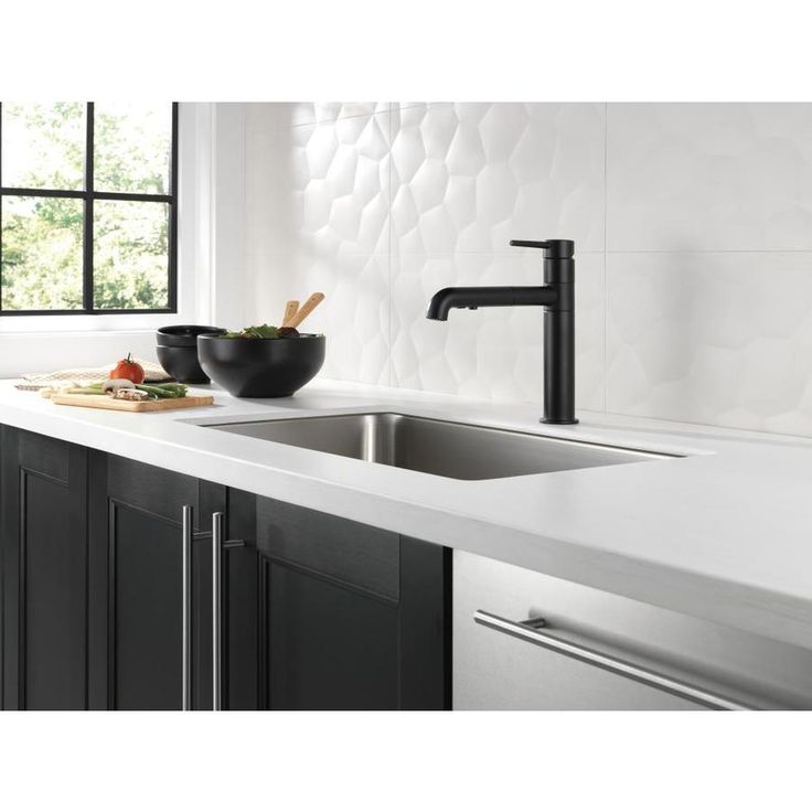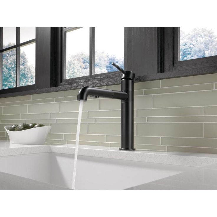 Delta Trinsic Matte Black 1-Handle Deck-Mount Pull-Out Handle Kitchen Faucet