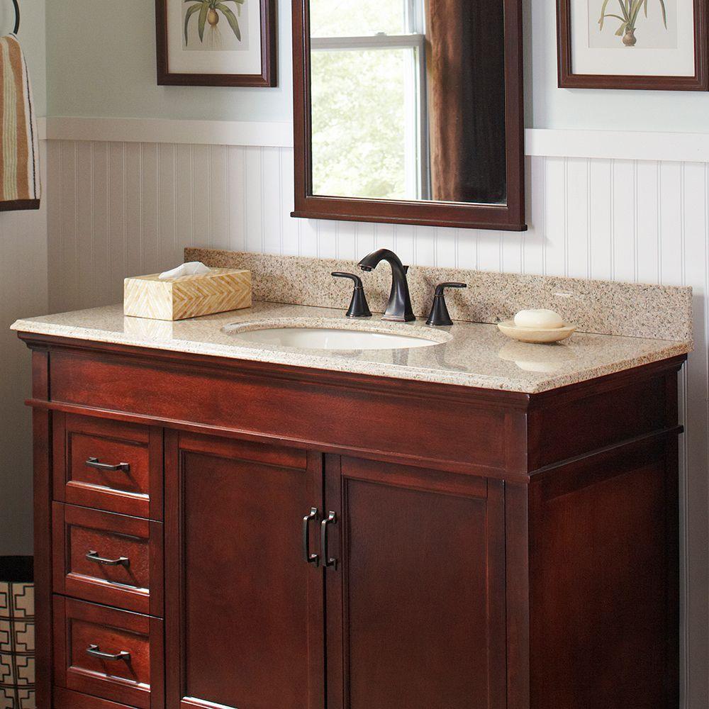 Transform your bathroom with a stunning Granite Vanity Top from Pegasus. Perfect for quick and hassle-free remodels, this top lets you achieve the beauty and durability of genuine granite without hiring a professional. Complete with a pre-attached undermount porcelain sink, the granite top is easy to install and fits directly on top of any standard 48 in. vanity cabinet. Please note that granite is a natural material, so slight color variation may occur as part of its distinctive appeal.