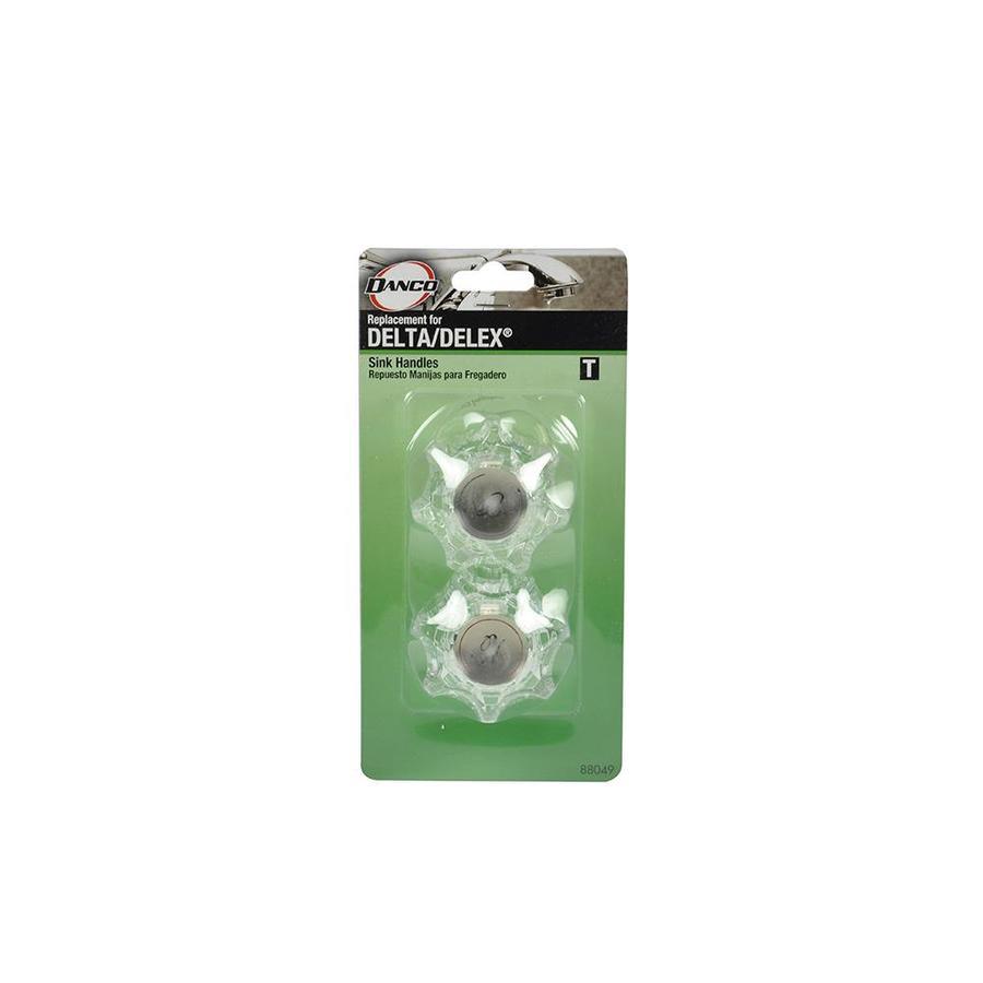 Plastic construction with a clear finish for a refreshed look Includes a pair of hot and cold handles Hot and cold graphic conveniently indicates the temperature mix Brand-specific fit handle for an exact match 1-5/8 in. diameter at the base with a 2-1/2 in. height Easy to install with little tools required