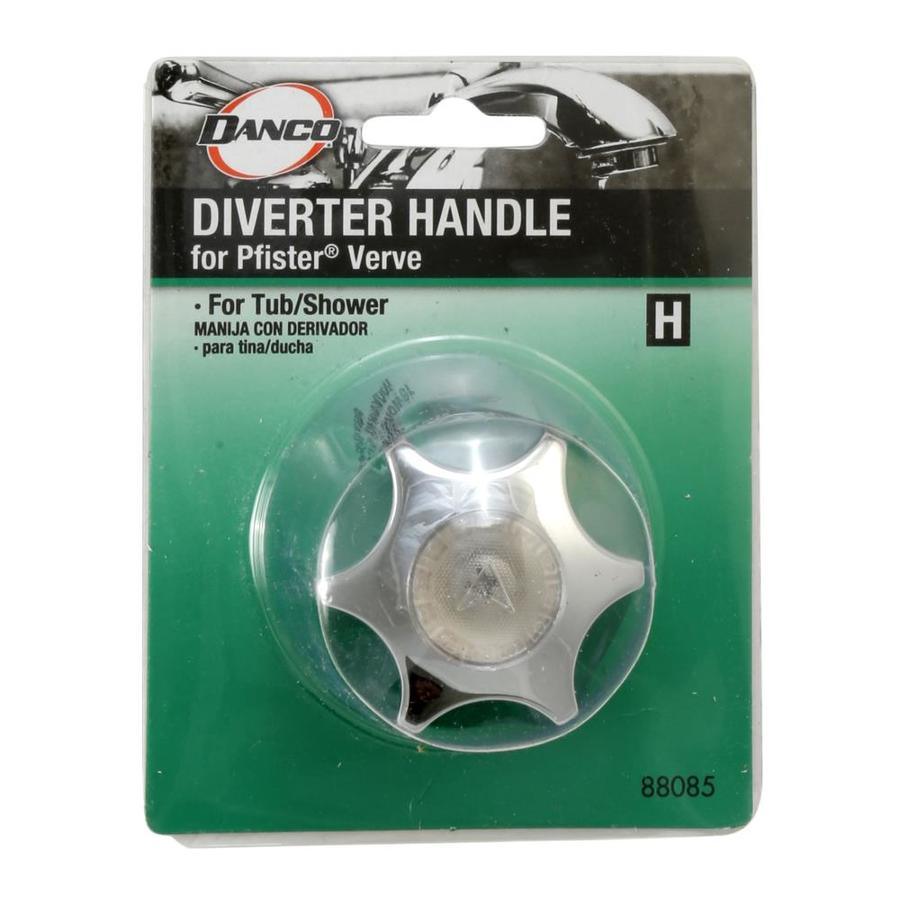 Durable metal construction provides strength and durability Handle fits Price Pfister Verve tub/shower faucets 2-3/8 inch diameter at the base with a 2-1/2 inch height Includes one diverter handle Chrome finish with a clear plastic button