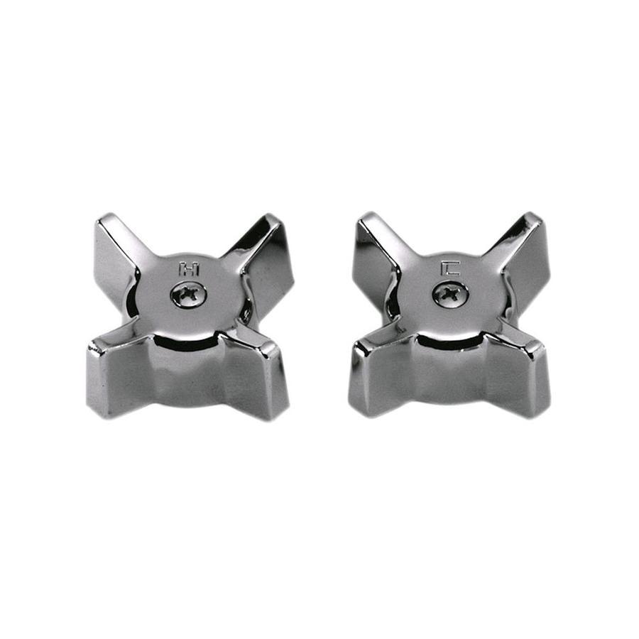 Durable metal construction 1-1/2 inch diameter at the base with a height of 1 inch Includes pair of hot and cold handles Stylish chrome finish