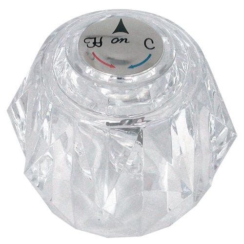 Durable plastic construction provides reliability Single handle bath replacement handle For use on Delta tub and shower faucets 2-3/16 inch diameter x 2-1/2 inch overall height Diamond-style broach Stylish clear finish