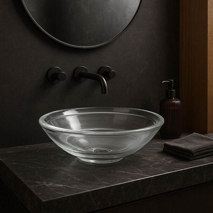 The KOHLER Spun Glass Vessel Sink in Ice transforms any bathroom into a sanctuary of sophistication. Its translucent glass design captures light beautifully, creating a luminous centerpiece. Pair it with a sleek wall-mounted faucet to enhance its modern appeal. This sink is not just a fixture; it's a statement of refined taste and timeless luxury.