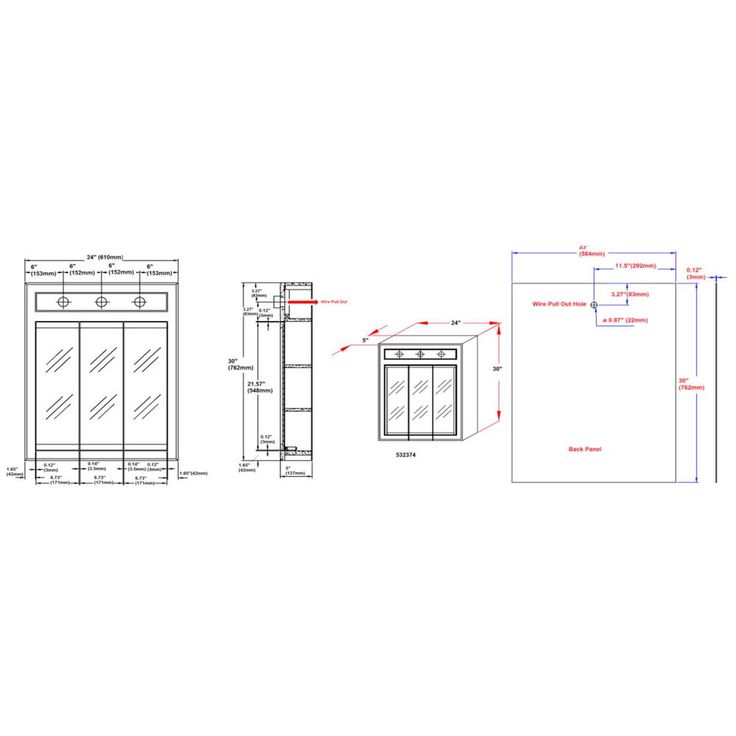 • 24 in. W x 30 in. H medicine cabinet provides ample storage for rooms with limited space