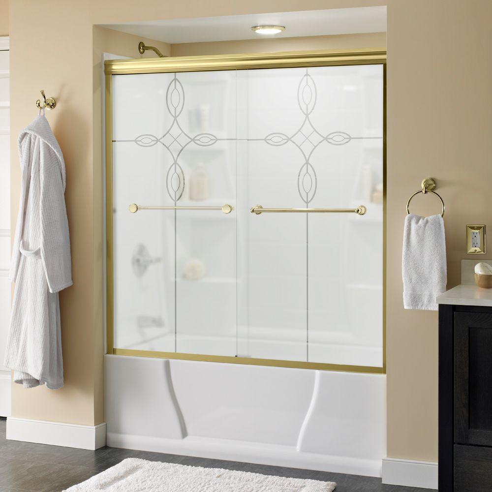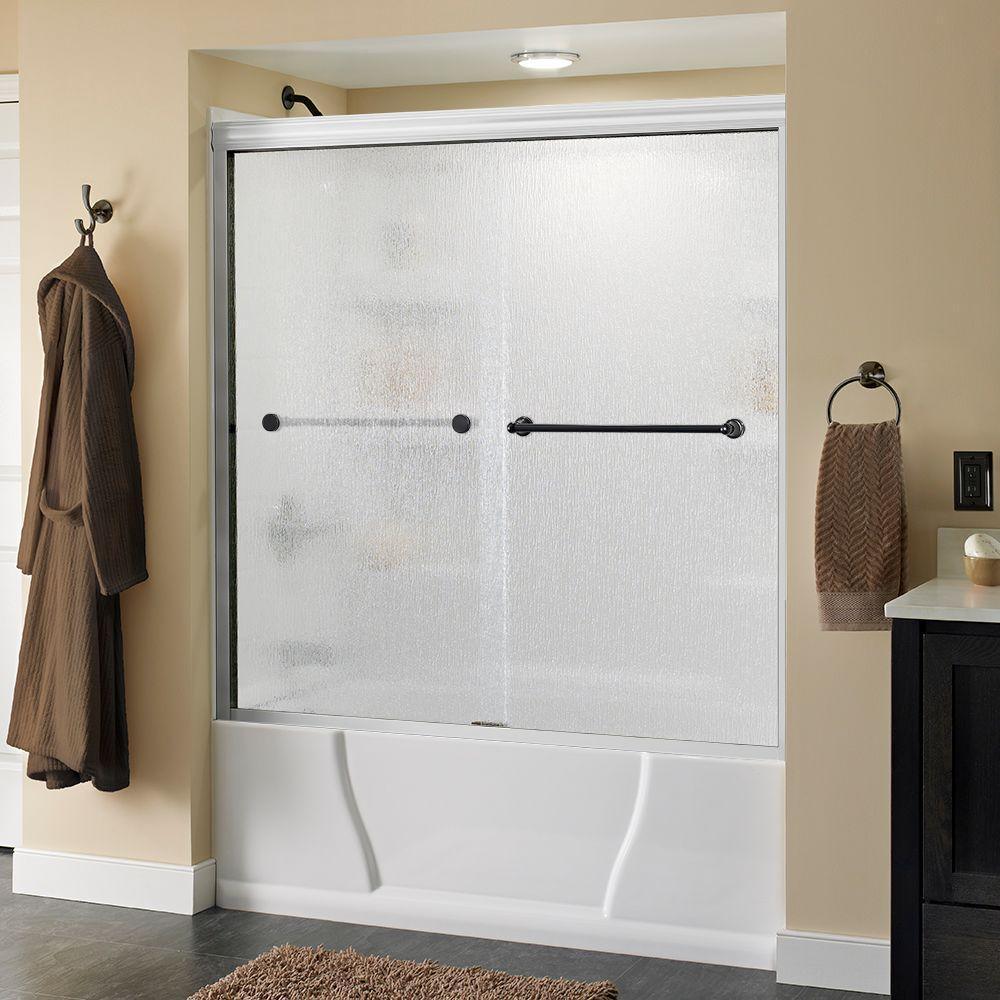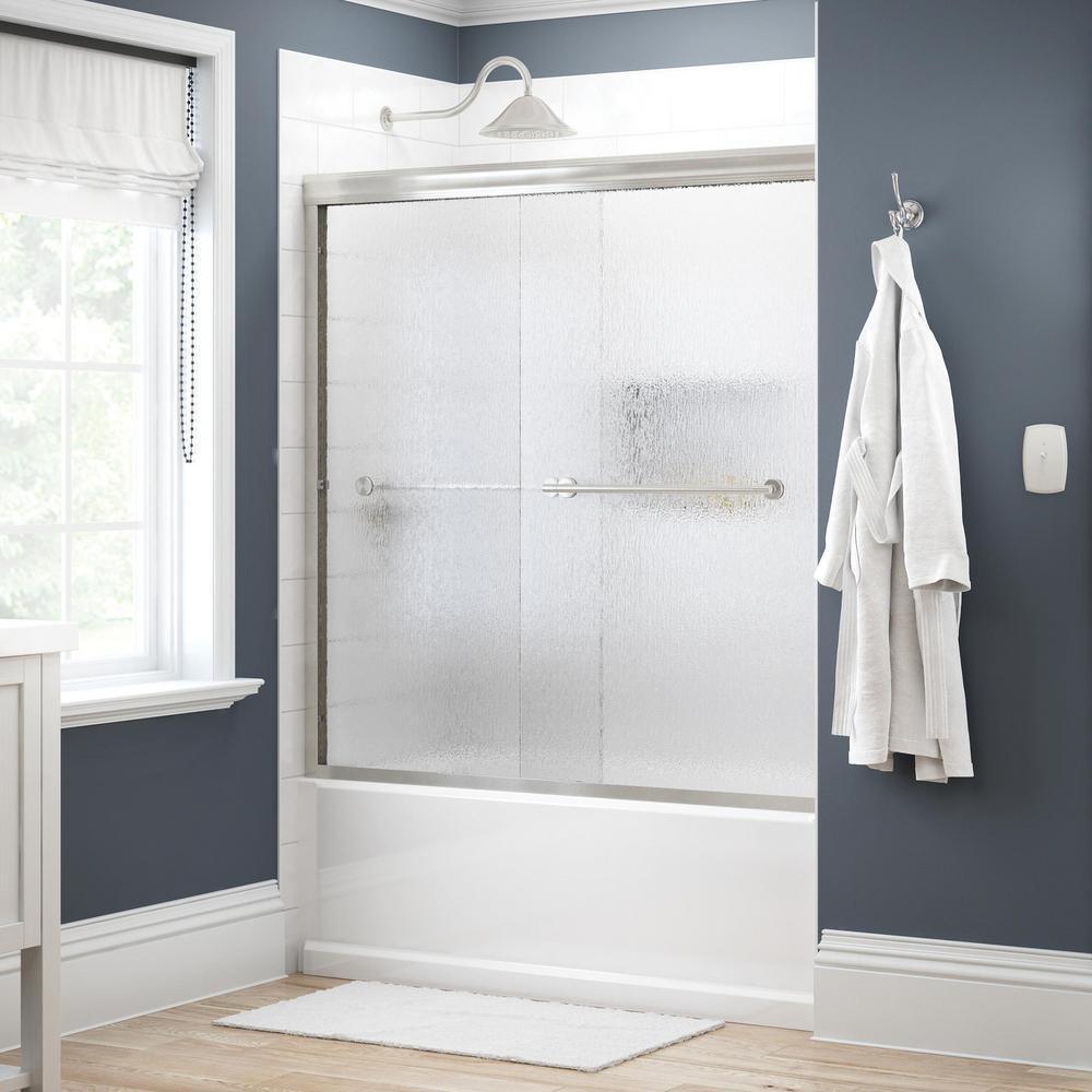 • Traditional sliding bathtub door designed to accommodate out-of-plumb (uneven, not vertically level) conditions totaling 3/8 in.