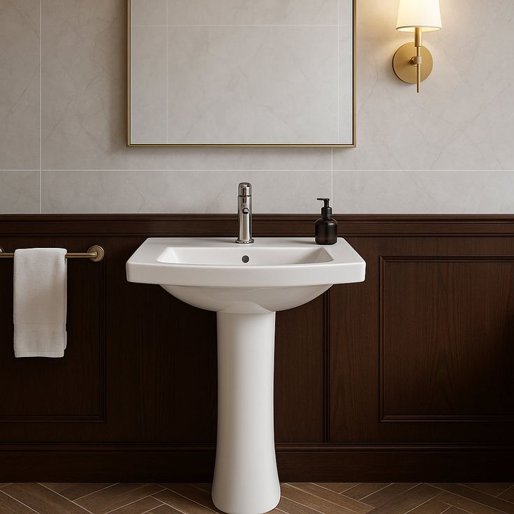 Upgrade your bathroom with the KOHLER Veer pedestal sink basin, combining style and functionality.