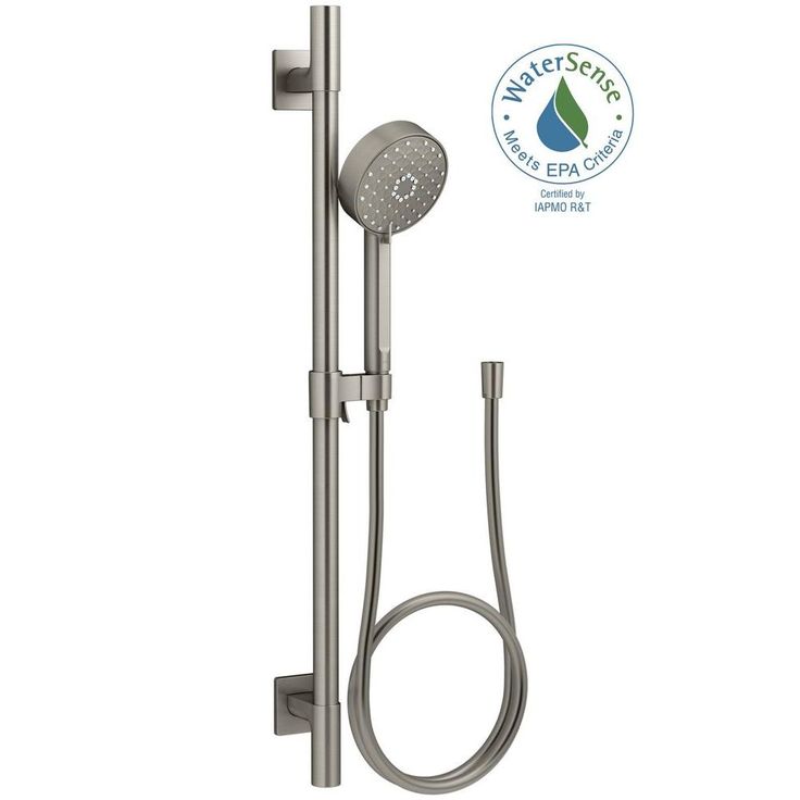 This all-in-one kit includes the Awaken G110 multifunction hand shower, a 24 in. slide bar and a 60 in. smooth hose. Advanced spray performance delivers 4 distinct sprays - wide coverage, intense drenching, targeted massage or reduced-flow spray -with a smooth rotation of a thumb tab. Ergonomic design makes for superior comfort and ease of use, with ideal balance and weight in the hand. The artfully sculpted spray face reveals simple, architectural forms that complement contemporary and minimalist baths.