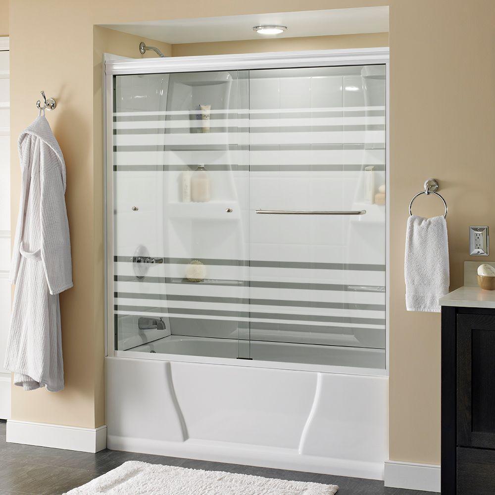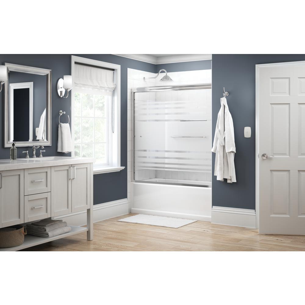 Whether you’re looking for a moderate DIY project or working on a bathroom remodel, upgrading your bathroom with a new sliding shower door is easy with the Delta 1-2-3 custom sliding shower door program. Delta’s custom glass shower door program offers 1000s of design combinations by choosing your glass shower panels, shower door track, and shower door handles to build a unique, personalized glass shower door. Simple and classic, the Traditional bathtub door track in chrome features a reversible top track with two unique profiles that offer uncompromised quality and value with a design that’s familiar and balanced. Make a statement with standard 1/4 in. ANSI certified tempered glass shower panels, featuring a modern blend of clear and frosted stripes creating a beautiful pattern that let’s in light but also offers some privacy. The Simplicity sliding shower door handle with knobs features a convenient towel bar for extra bathroom storage and two interior knobs for extra showering space in a simple design silhouette that beautifully combines form and function.