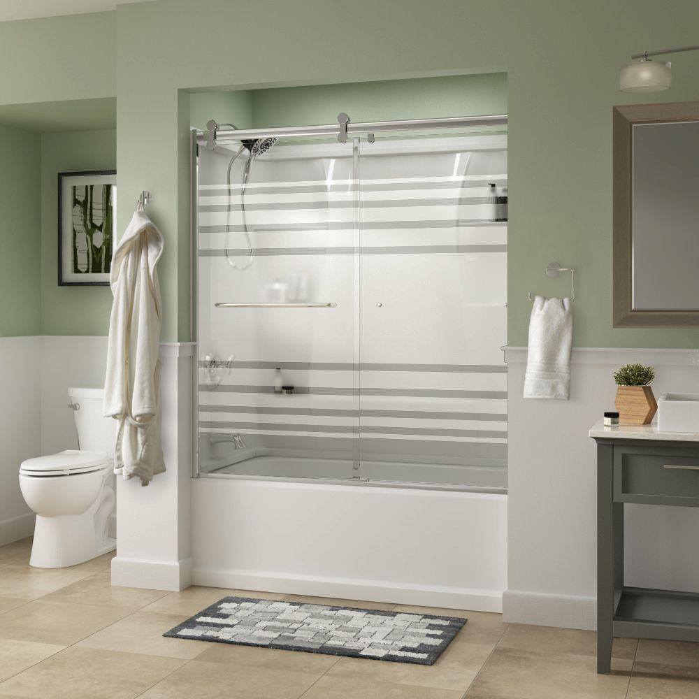 • Contemporary sliding bathtub door designed to accommodate out-of-plumb (uneven, not vertically level) conditions totaling 3/8 in.