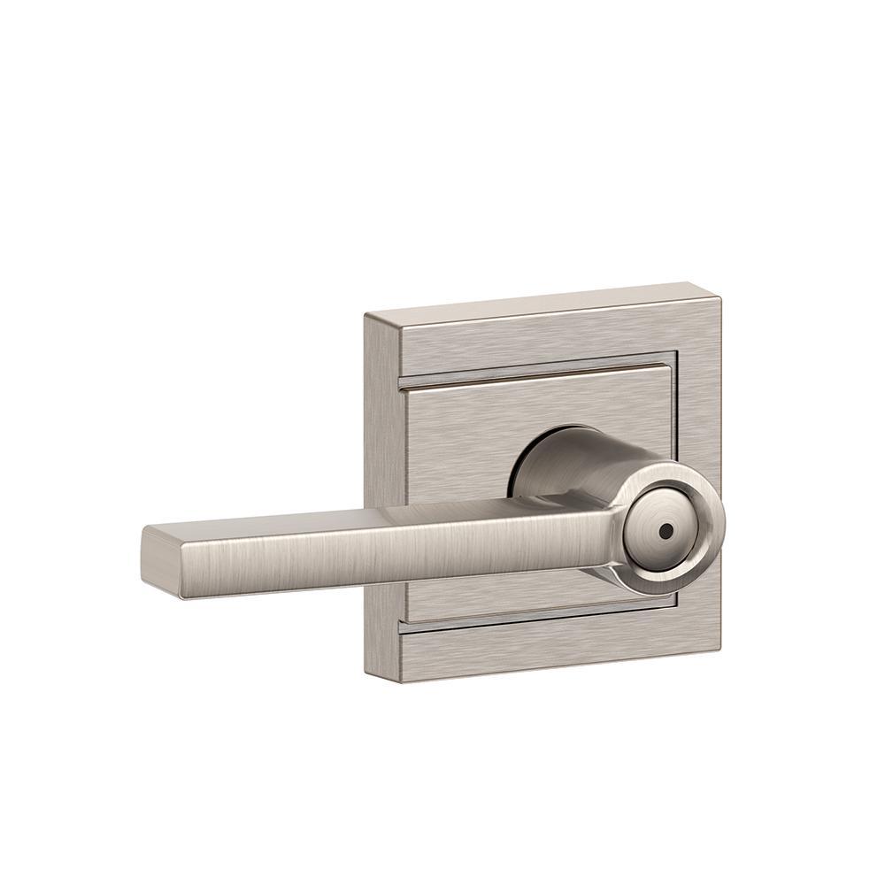 Latitude Satin Nickel Privacy Bed/Bath Door Lever with Upland Trim