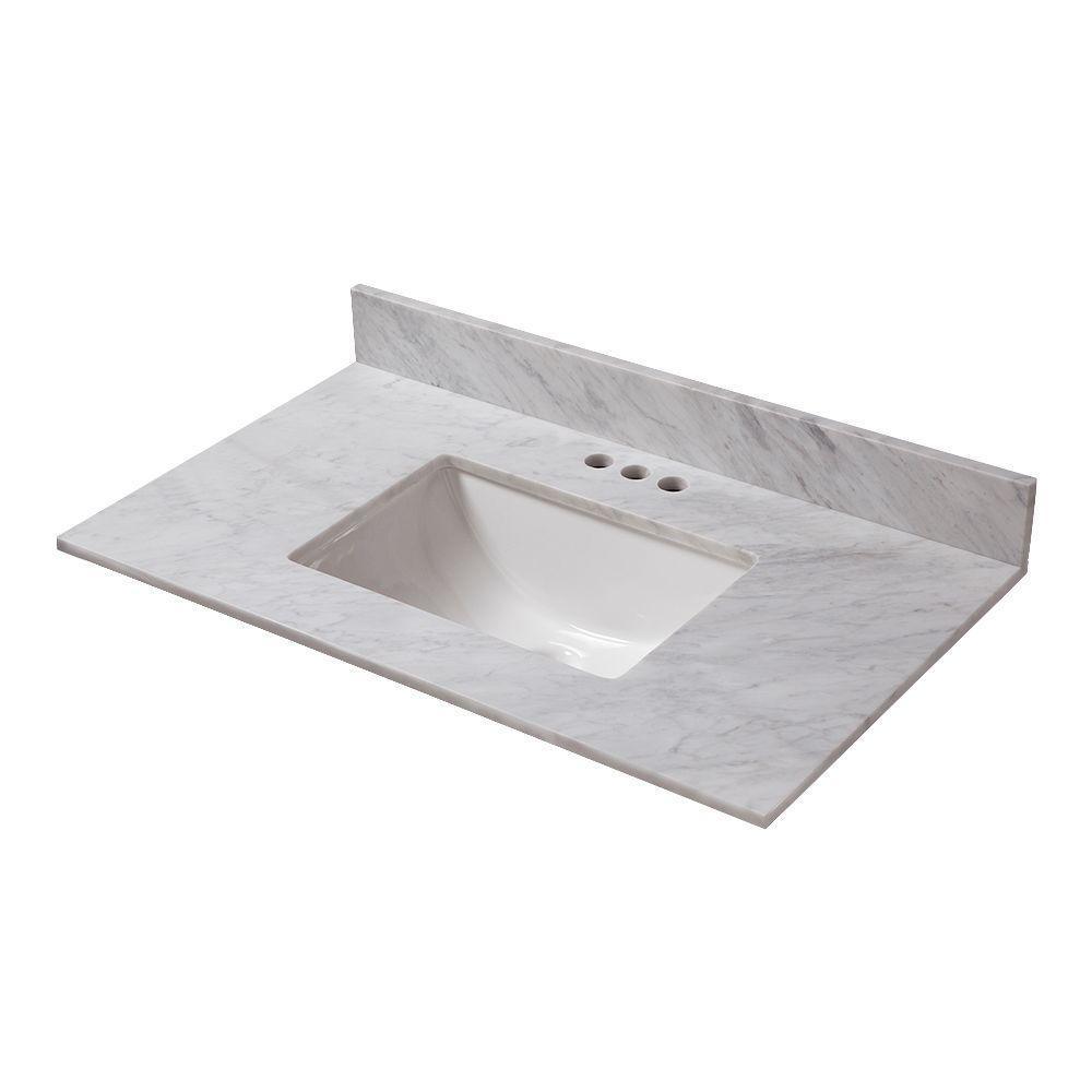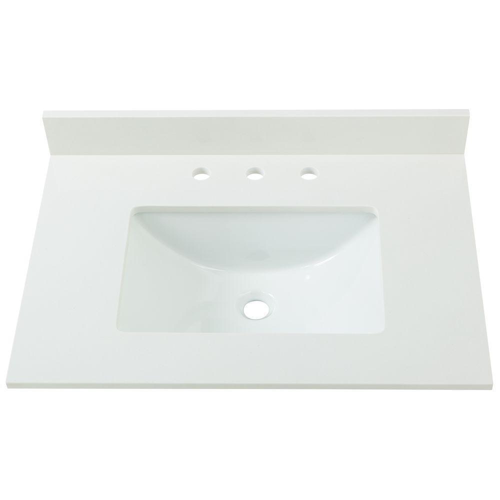 61 in. W Engineered Marble Single Sink Vanity Top in Winter White with White Trough Sink