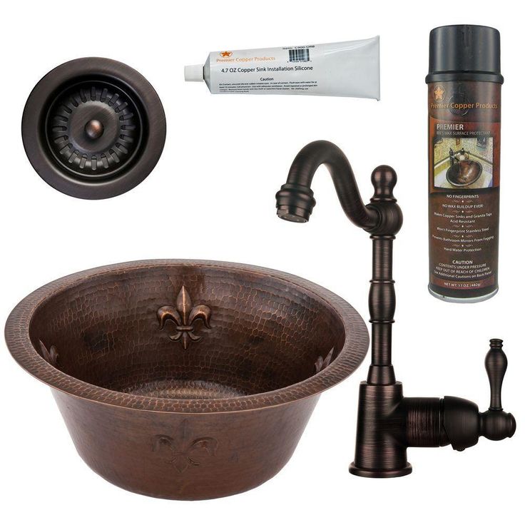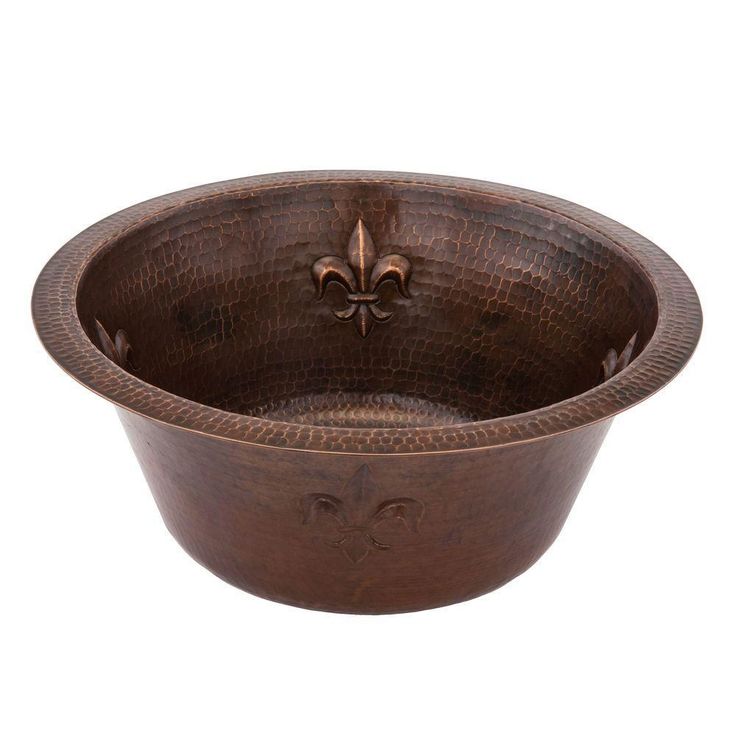 All-in-One Dual Mount Copper 16 in. Round Fleur De Lis Bar/Prep Sink with Faucet and Strainer Drain in Oil Rubbed Bronze