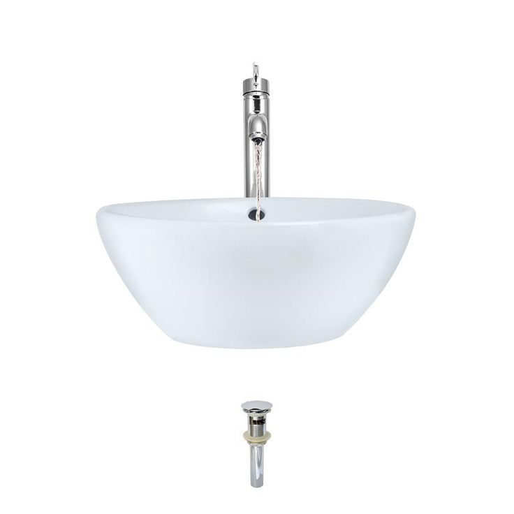 MR Direct Porcelain Vessel Sink in White with 718 Faucet and Pop-Up Drain in Chrome