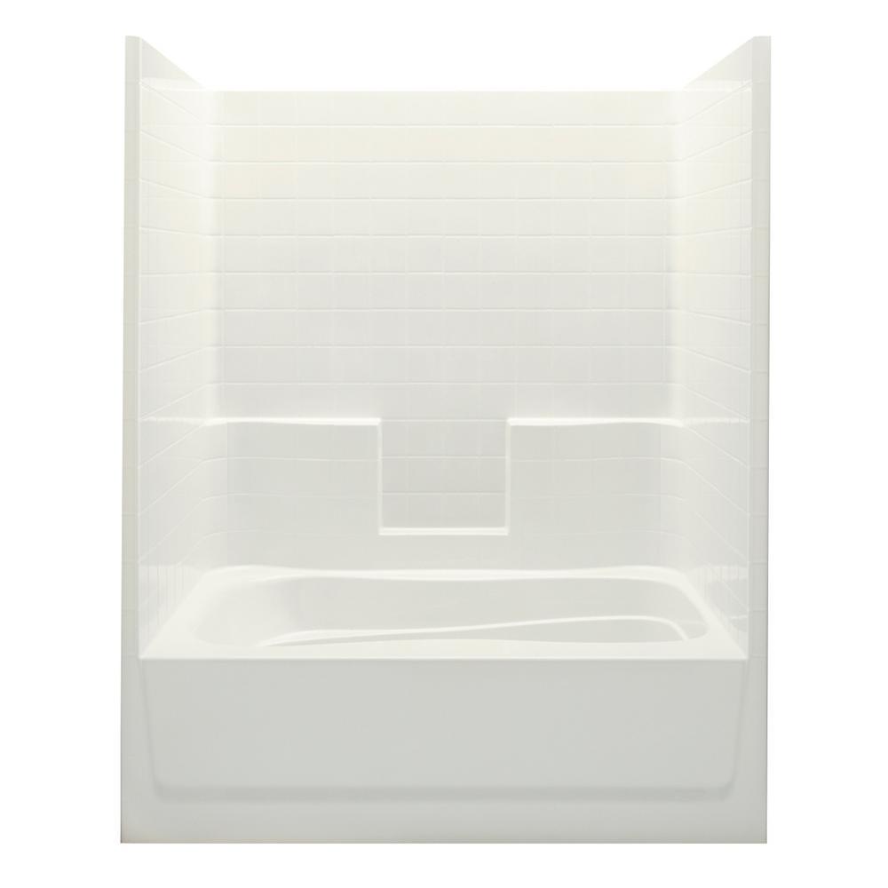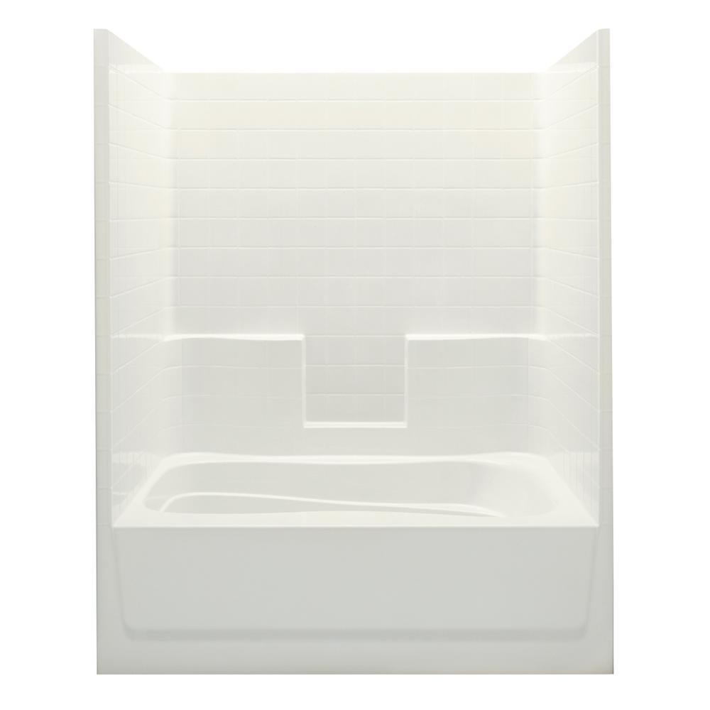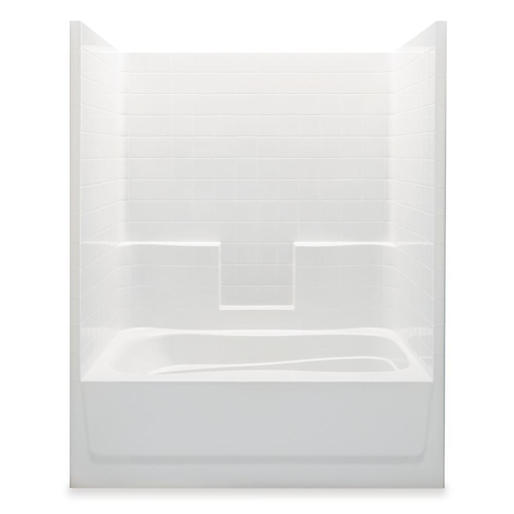 Tub-shower units combine the advantages of beauty, durability and easy maintenance in your choice of versatile designs. Enjoy the combined strengths of both tub and shower. A tub-shower allows you to save space without compromising style. This unit is crafted from an Acrylx applied -Acrylic finish reinforced with Armorcore. Our Everyday line of product now comes standard with Aquatic's exclusive ArmorCore bottom reinforcement; our newest manufacturing breakthrough. This unit features three integral toiletry shelves, integral arm rests and a right hand drain. This unit features a smooth tile finish.