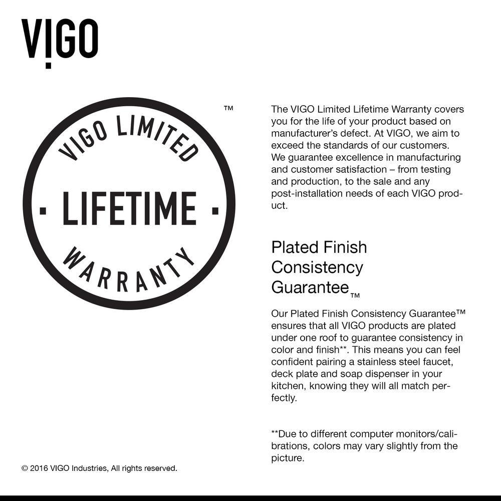 • CONSISTENT FINISH GUARANTEE: All VIGO products are coated and plated under one roof to guarantee consistency in color and finish