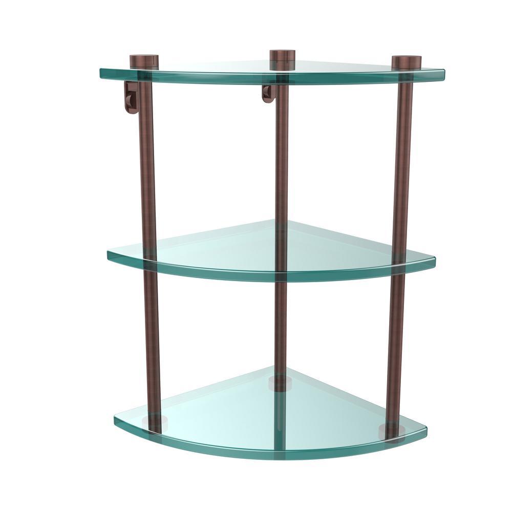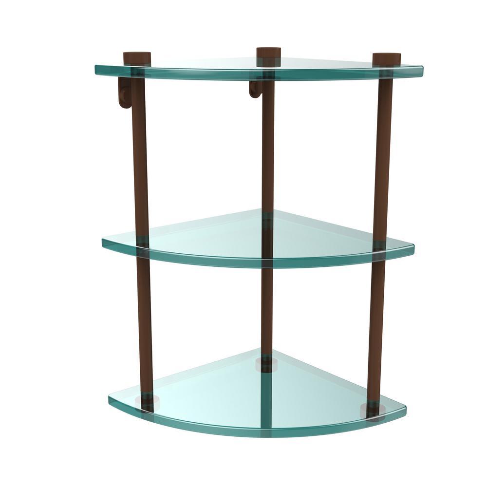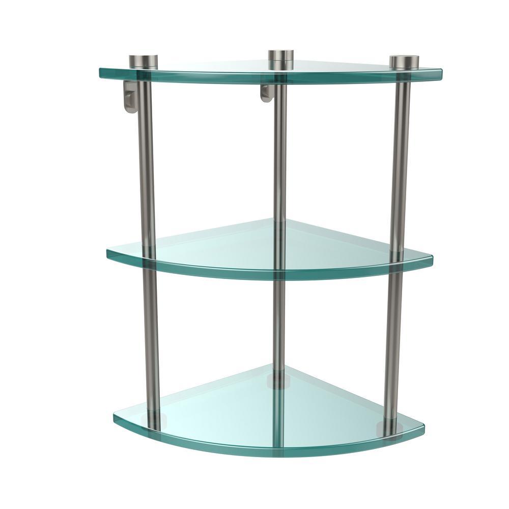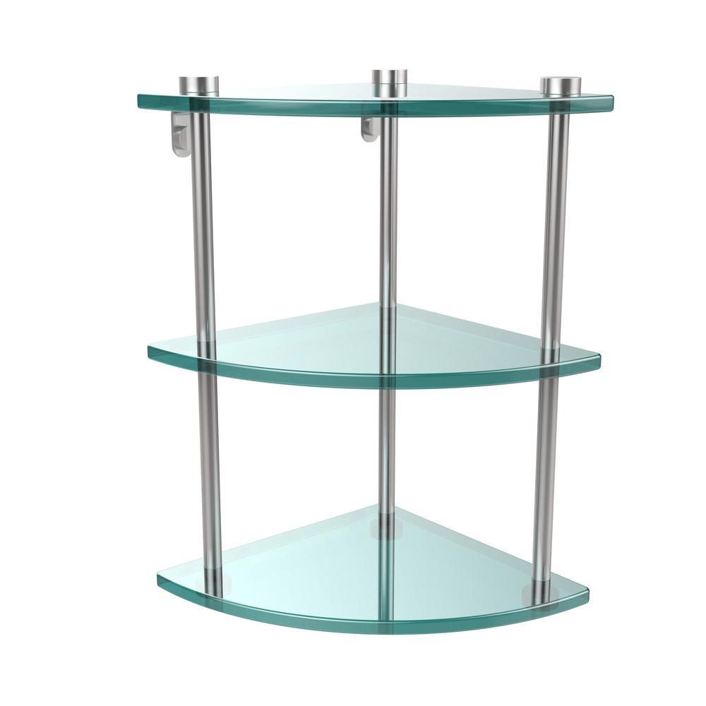 • 8 in. L x 15 in. H x 8 in. W 3-Tier Corner Clear Glass Bathroom Shelf keeps your bathroom organized