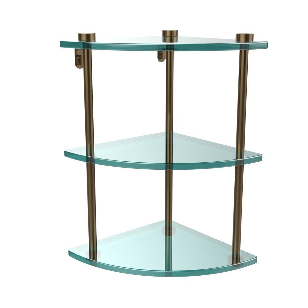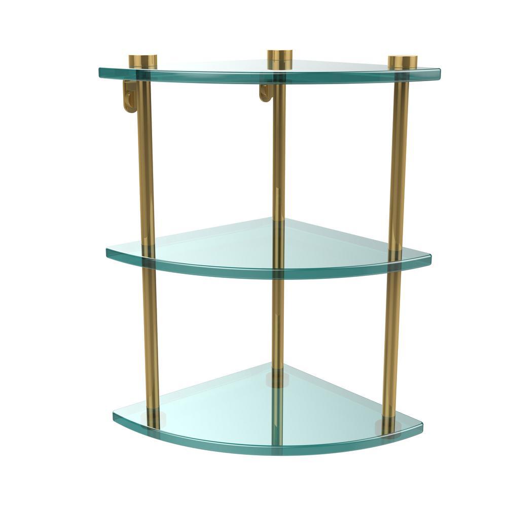 The 8 in. L x 15 in. H x 8 in. W 3-Tier Corner Clear Glass Bathroom Shelf suits a wide range of decor, from modern to traditional. It has a tempered beveled-edged glass and a sturdy brass construction which together provide long-lasting durability. Its matte black finish adds a touch of elegance to your bath space and helps repel staining and corrosion from water. Its 3-tier design provides ample of space for storing products. This bathroom shelf comes with all the hardware required for mounting and installation.