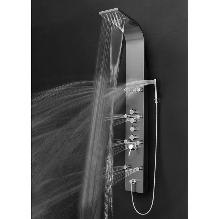 65 in. 8-Jet Shower Panel System in Space Gray Brushed Stainless Steel with Rainfall Waterfall Shower Head and Wand