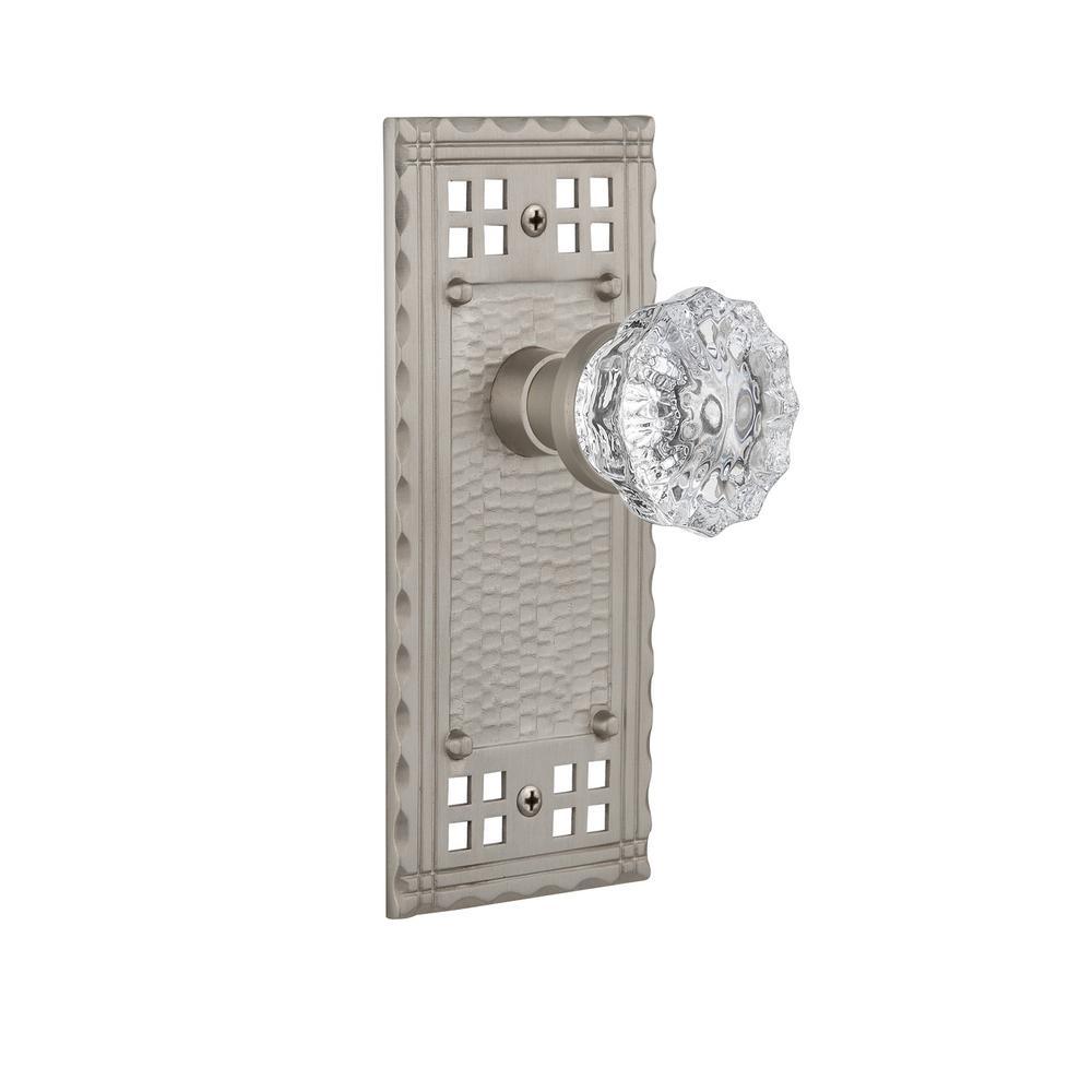 Craftsman Plate 2-3/8 in. Backset Satin Nickel Privacy Bed/Bath Crystal Glass Door Knob