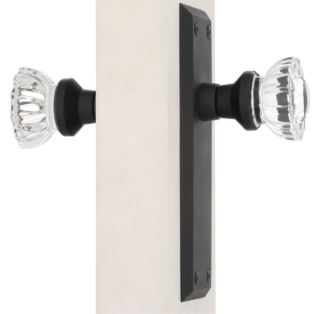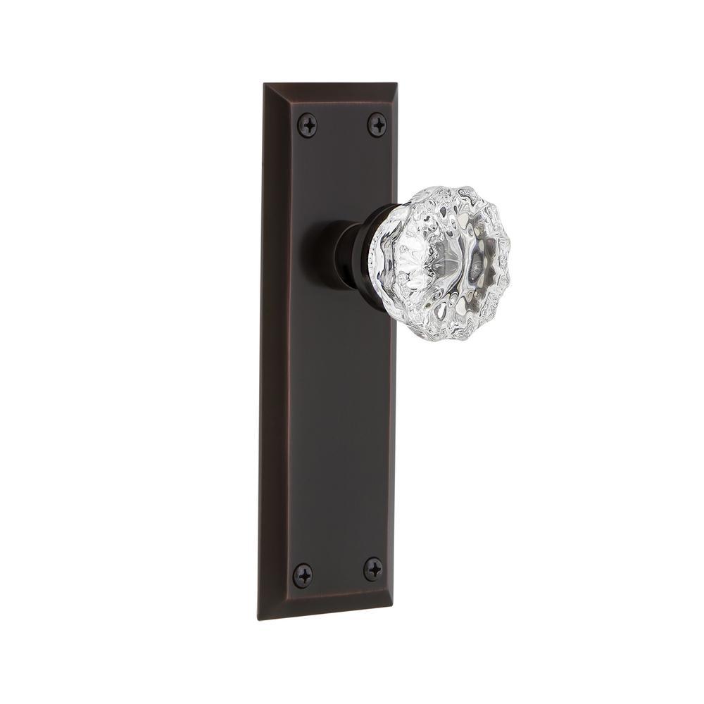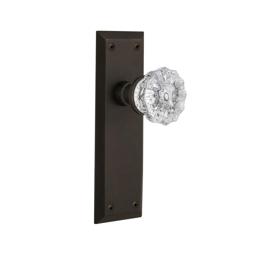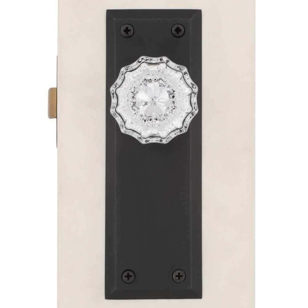 New York Plate 2-3/8 in. Backset Oil-Rubbed Bronze Privacy Bed/Bath Crystal Glass Door Knob