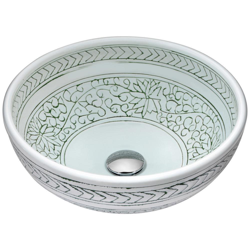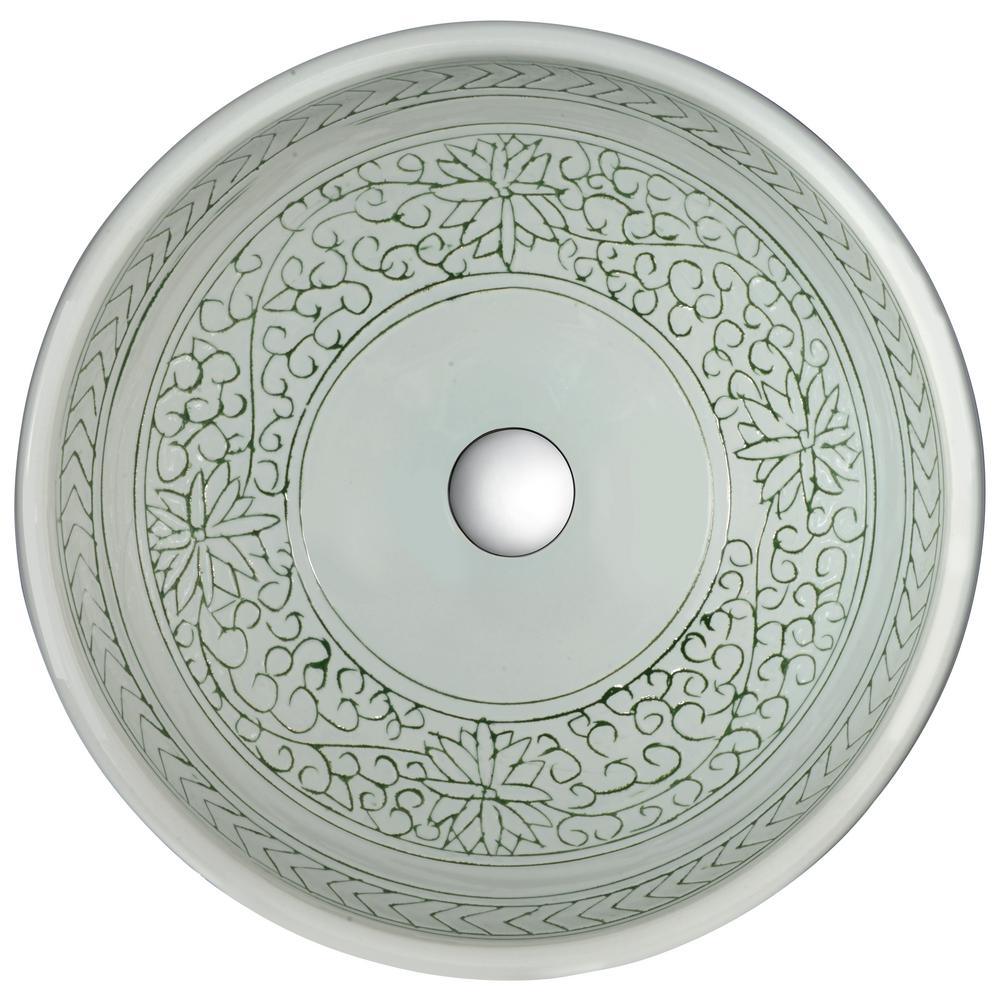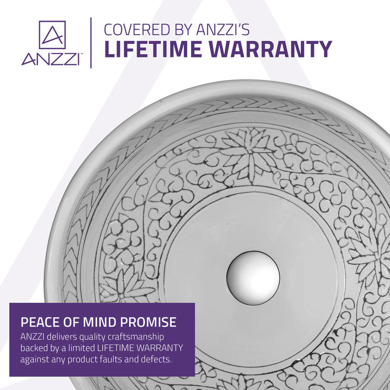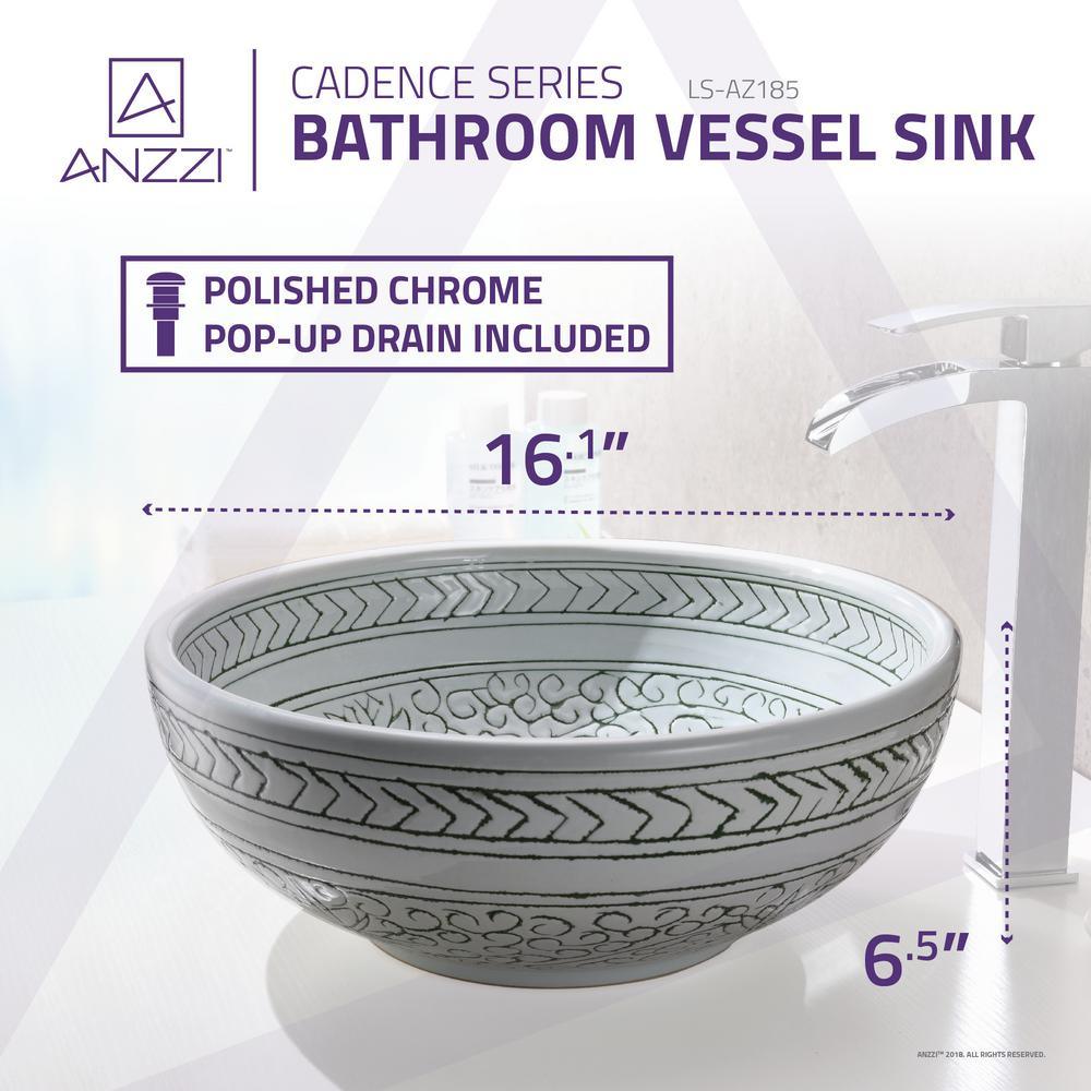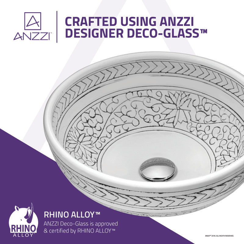 ANZZI Cadence Series 16.1 in. Round Bathroom Vessel Sink, Décor White, Tempered Deco-Glass