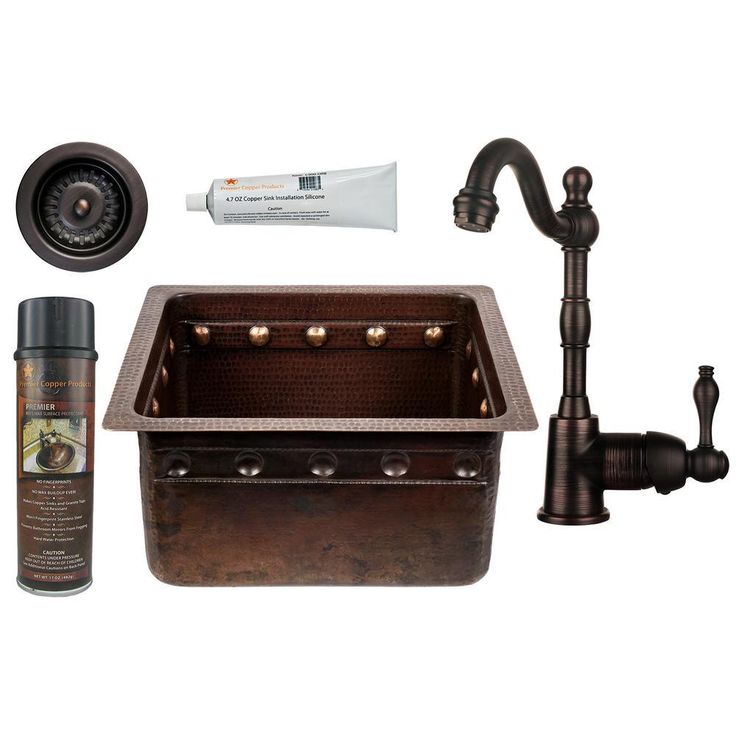 All-in-One Dual Mount Copper 16 in. Barrel Strap Bar/Prep Sink with Faucet and Strainer Drain in ORB
