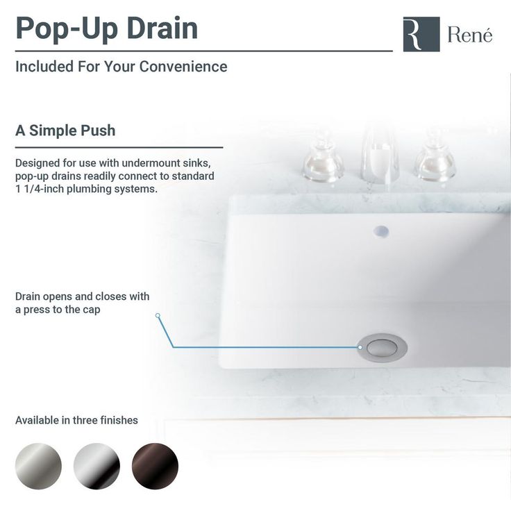 • Supportive extras - standard pop-up drain is spring loaded to open or close with a simple push