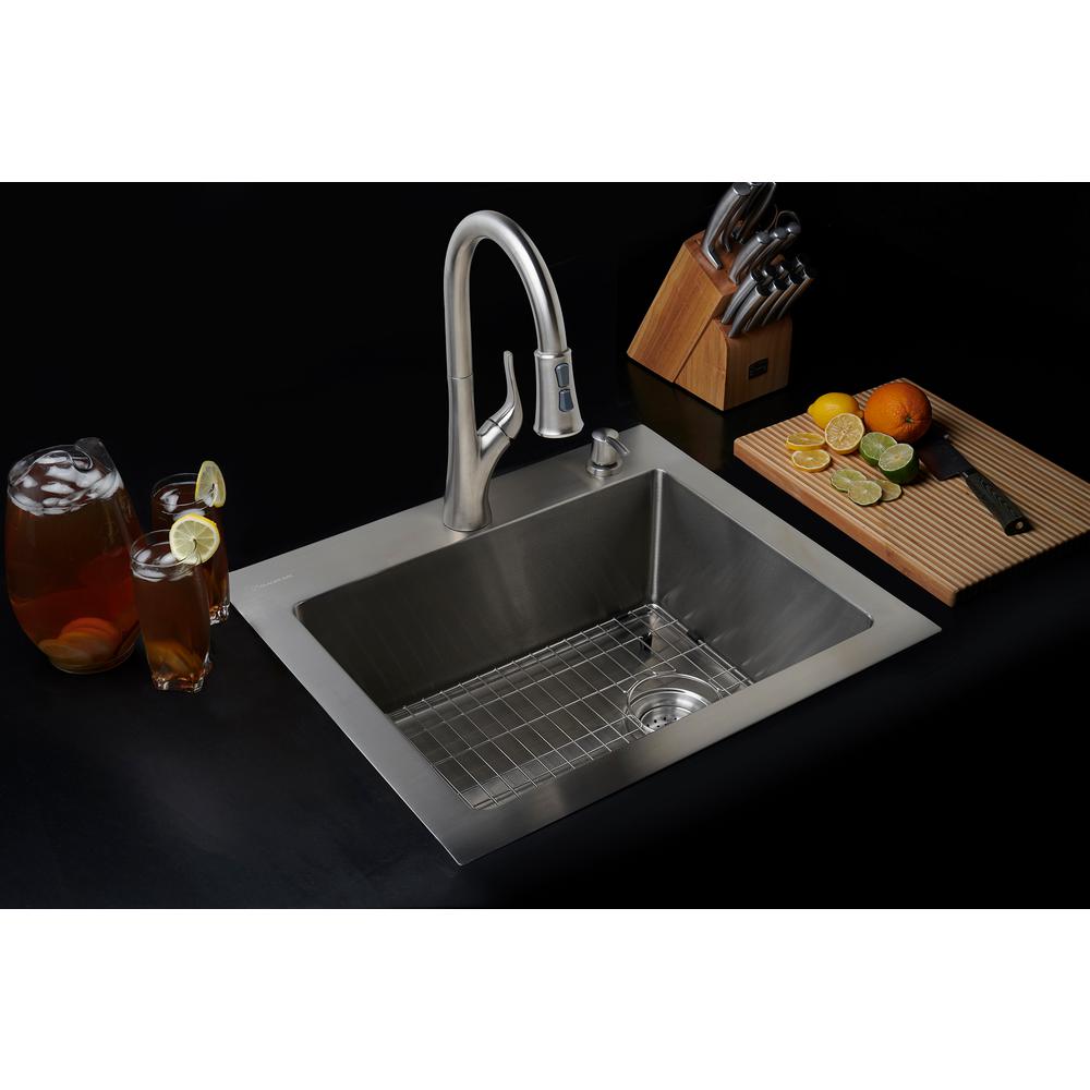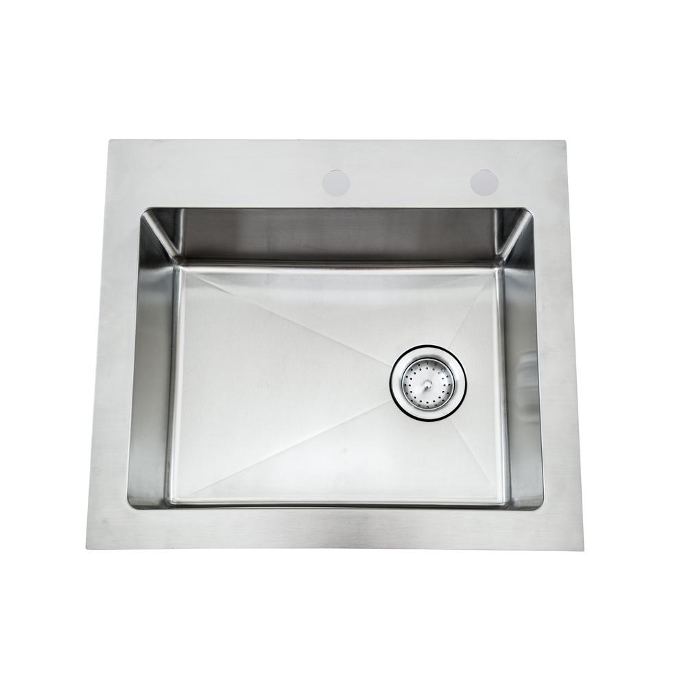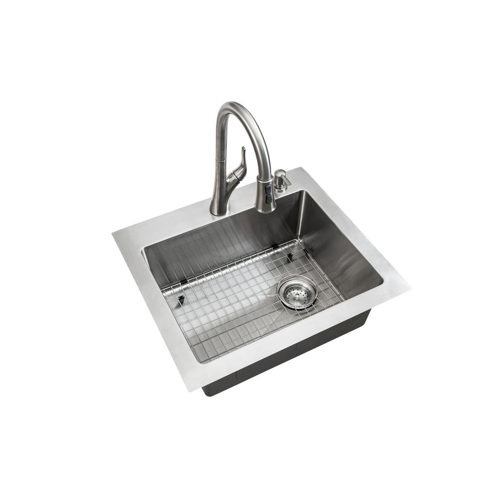 All-in-One Dual Mount Stainless Steel 25 in. 2-Hole Single Bowl Tight Radius Kitchen Sink in Brushed Finish with Faucet