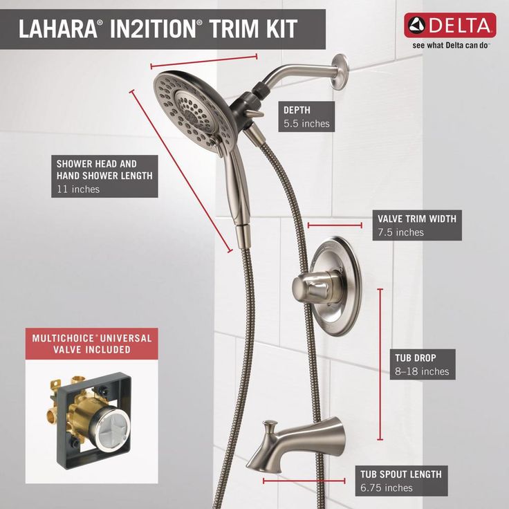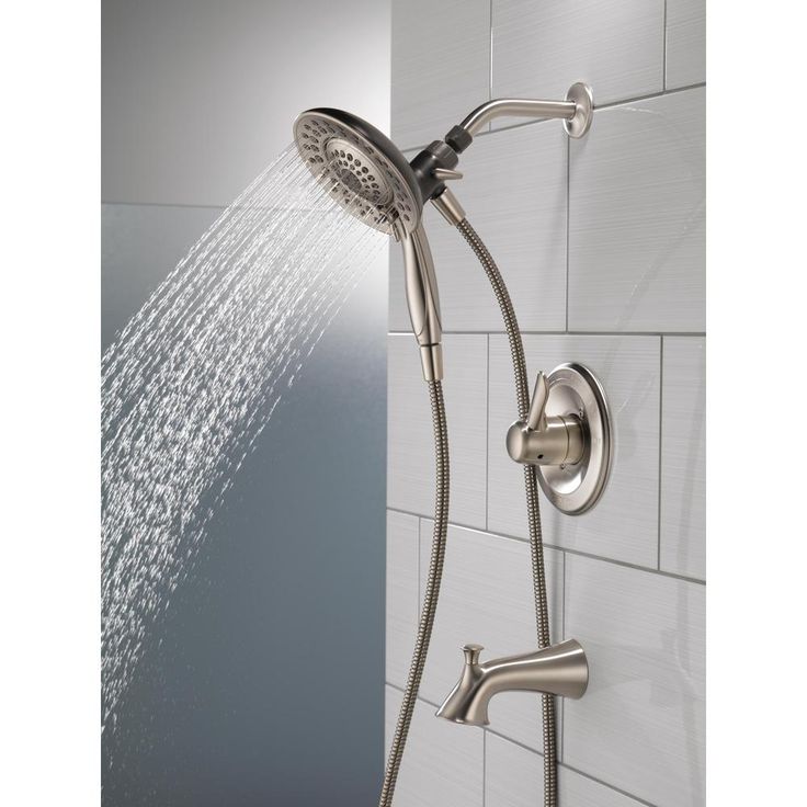 This Lahara In2ition 2-in-1 Single-Handle 5-Spray Tub and Shower Faucet in Brushed Nickel features a detachable hand shower, which can run separately from or simultaneously with the shower head, giving you the warmth and flexibility of 2-stream of water at once. Enjoy the comfort of water streaming from the shower head position, while the hand shower offers the flexibility to accomplish other tasks, such as bathing your children; washing your pet; and keeping your shower clean. When you're finished, simply slip the hand shower back into place on the shower head. Delta pressure-balance valves use Monitor Technology to protect you and your family from sudden temperature changes.