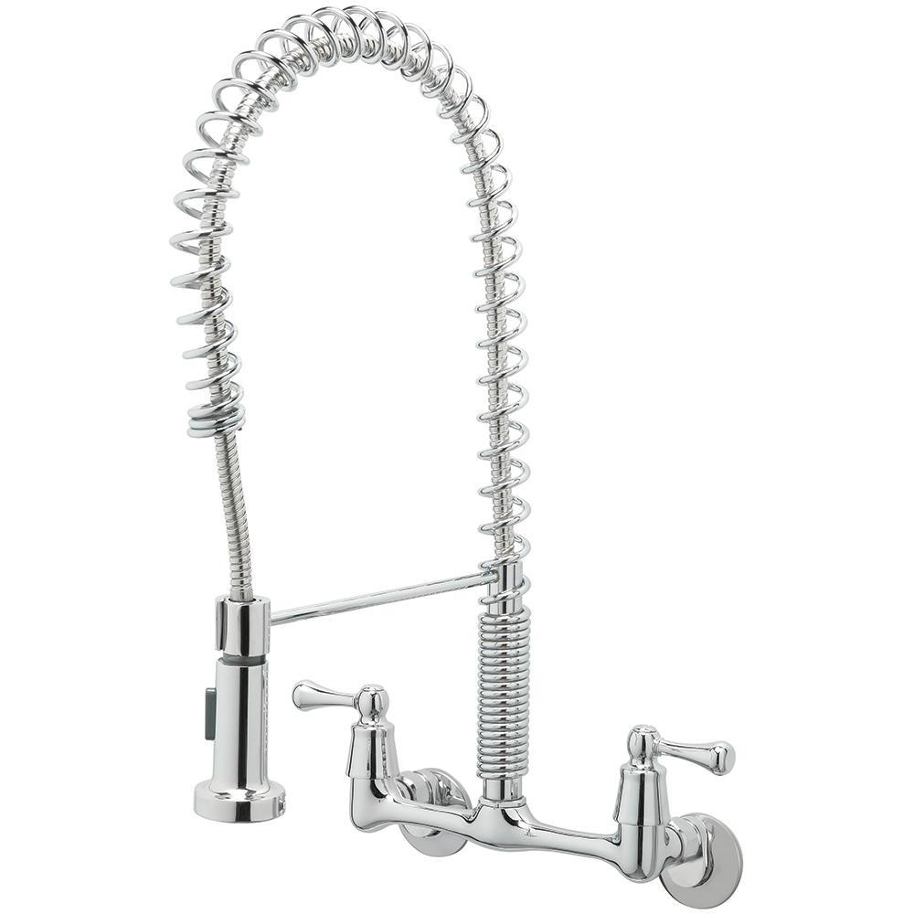 2-Handle Wall-Mount Pull-Down Sprayer Kitchen Faucet in Stainless Steel