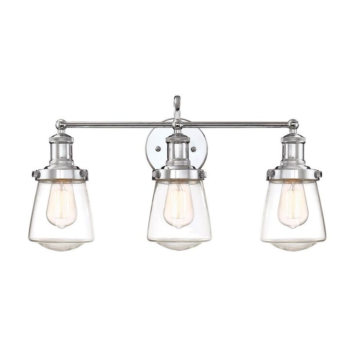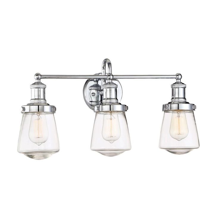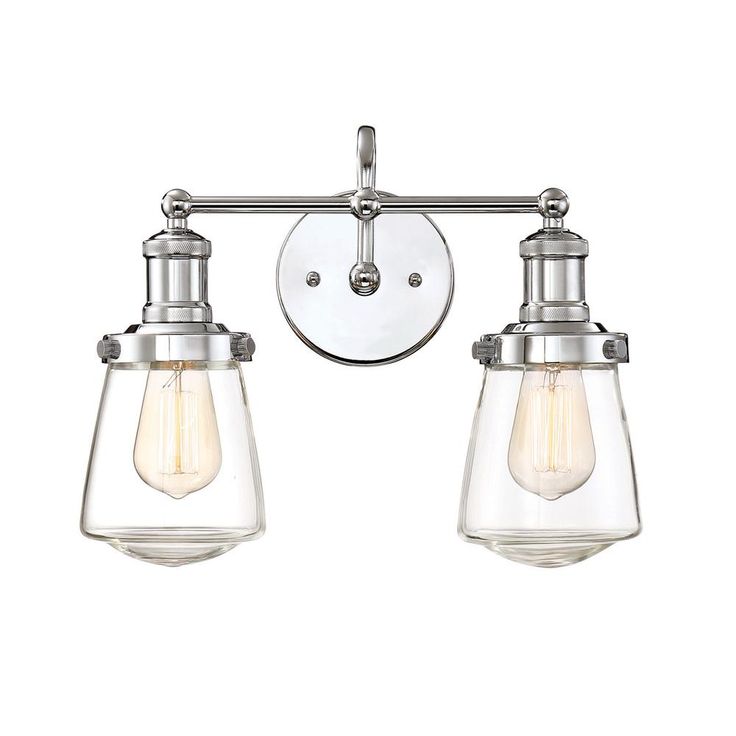 Taylor bath vanities offers clear glass shades for a clean, fresh look that has taken hold in today's home interior light fixtures. The protective chrome finish adds sophistication to this light fixture and allows the filament style light bulb to play a part in the design. These light fixtures come with everything you need for easy installation with the shades in the up or down position. Made from durable steel for long-lasting style in your home.