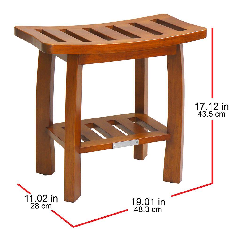 19.01 in. D x 11.02 in. W Solid Wood Spa Shower Bench with Storage Shelf in Teak