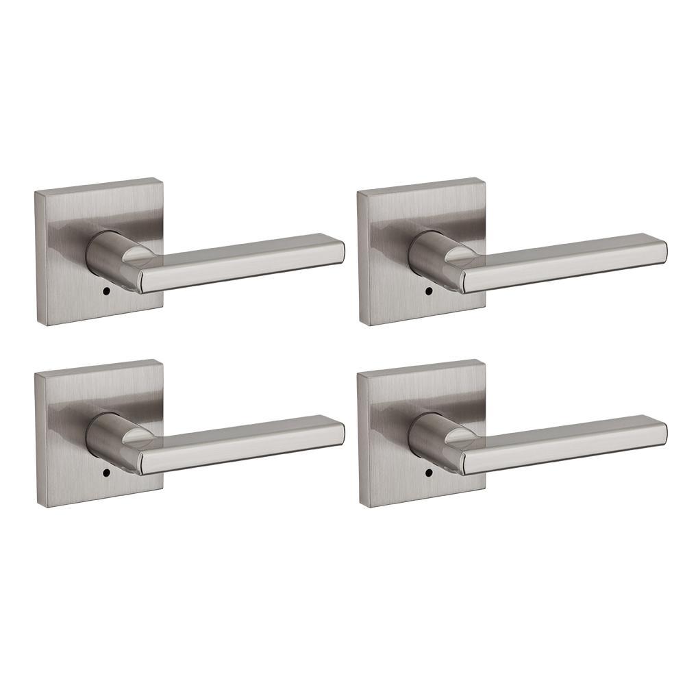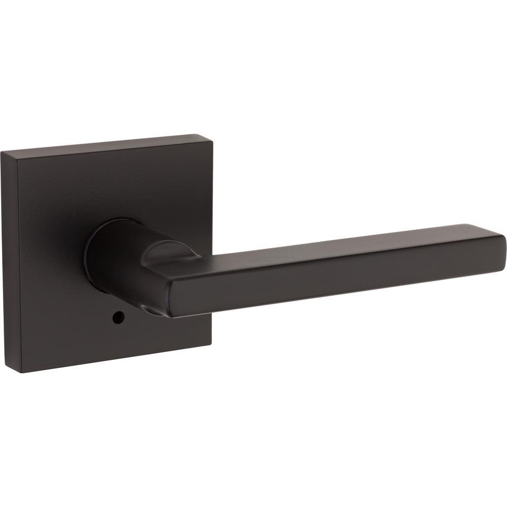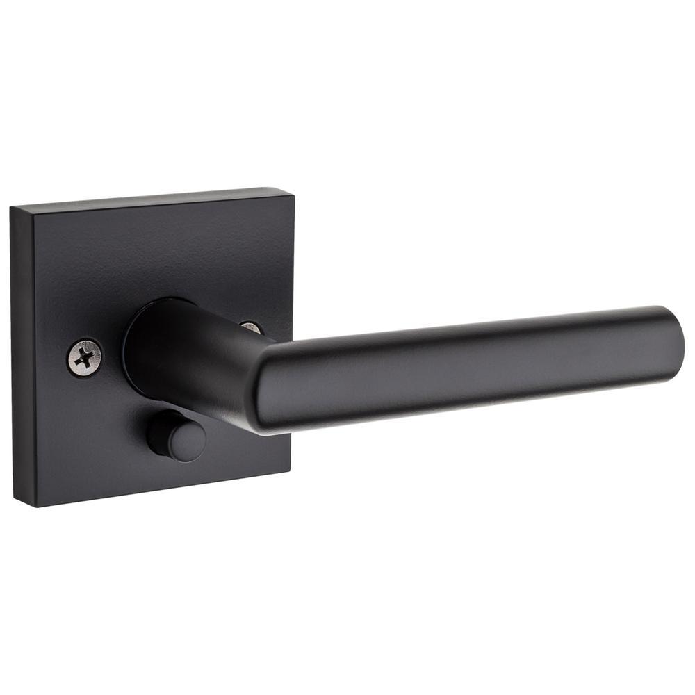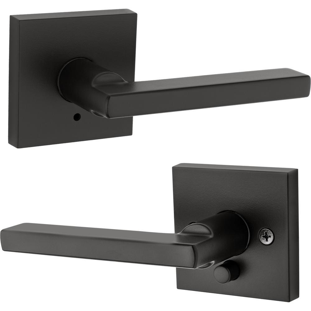 This reversible Kwikset Signature Series door lever (4-pack) mounts on right- and left-handed doors. It is ideal for interior doors requiring privacy locking function, such as bedroom or bathroom doors. An interior push button locks and unlocks the lever, which can also be unlocked with an included emergency key. Easy to install simply using a screwdriver, you can insert this metal lever in doors no thicker than 1-3/4 in. The latch features an adjustable backset and three interchangeable faceplates in rounded corner, square corner and in collar. Designed to emphasize the contemporary home, this sturdy door lever features an Matte Black finish to add a rich and warm accent to the application site.