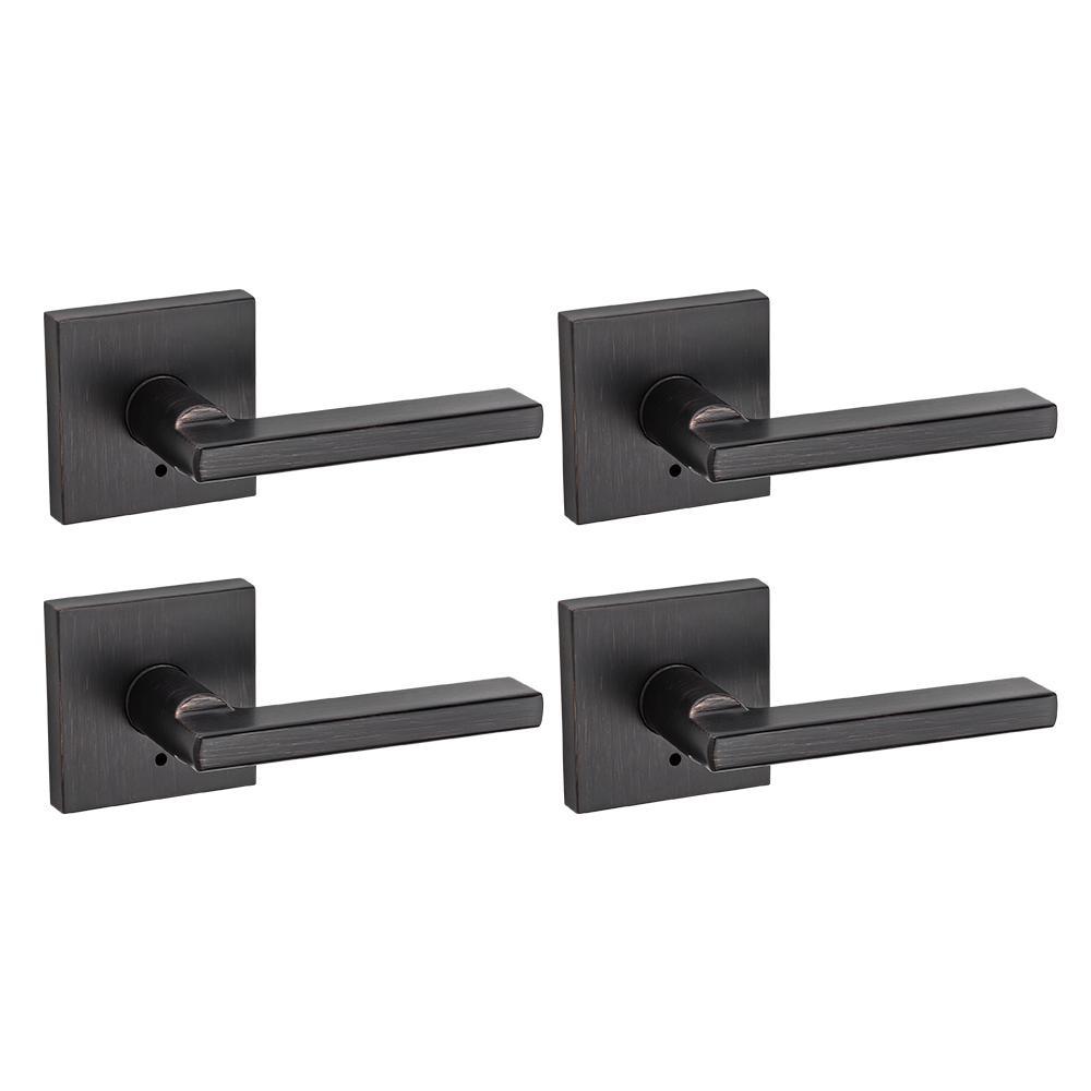 Halifax Square Matte Black Privacy Bed/Bath Door Lever (4-Pack)