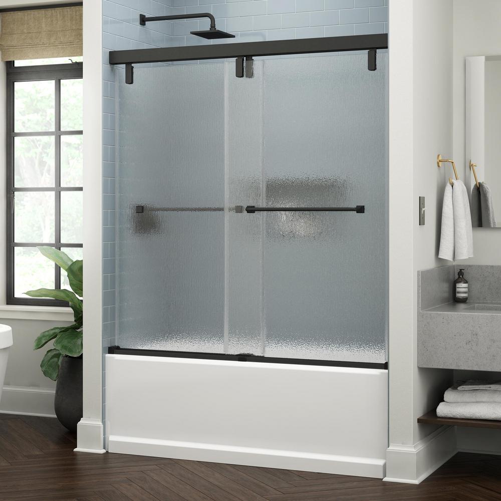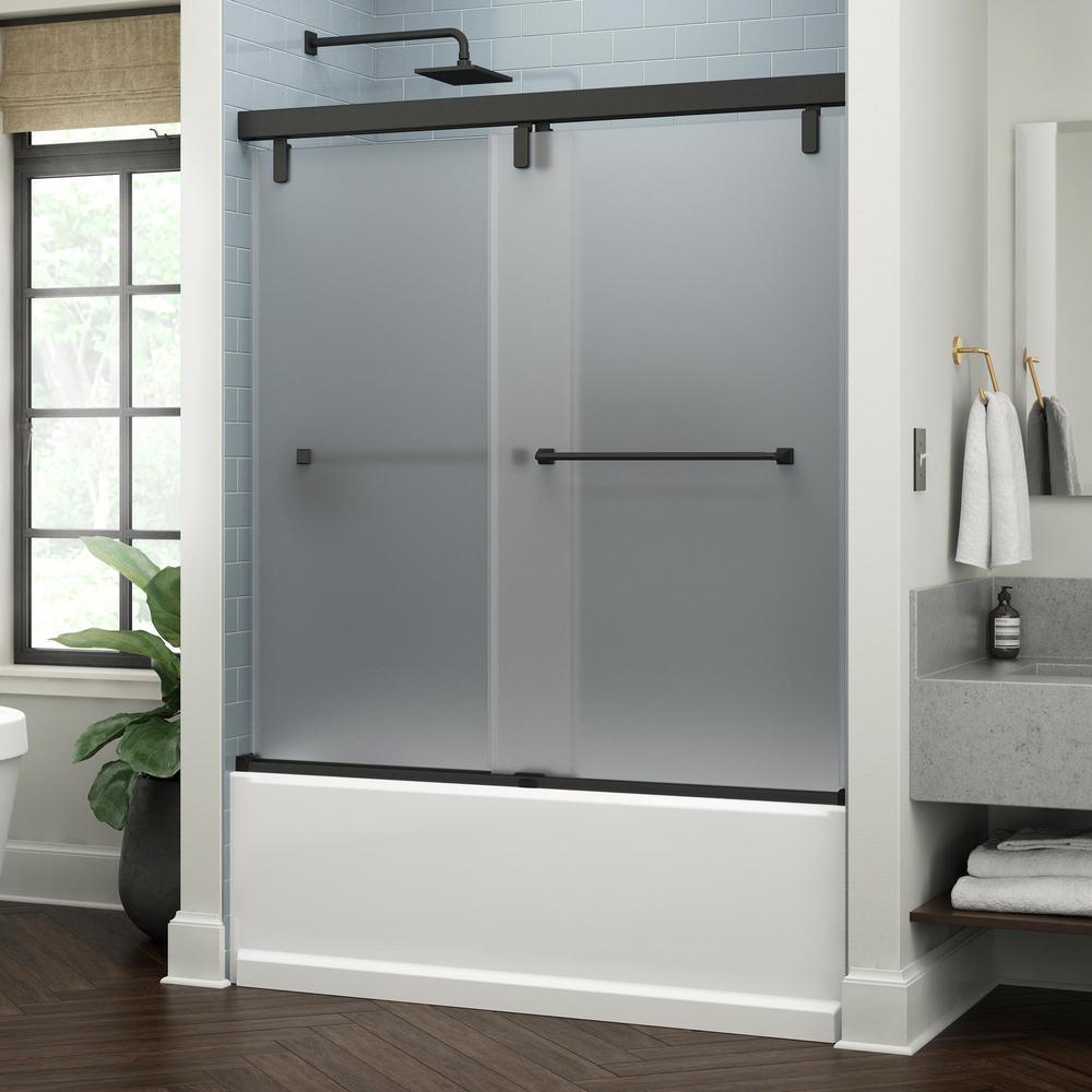 • Mod sliding bathtub door designed to accommodate out-of-plumb (uneven, not vertically level) conditions totaling 3/8 in.