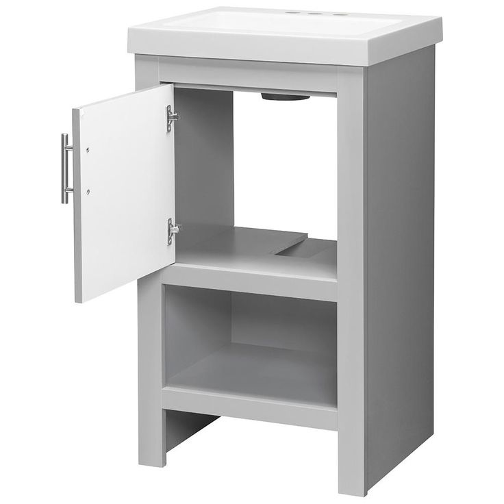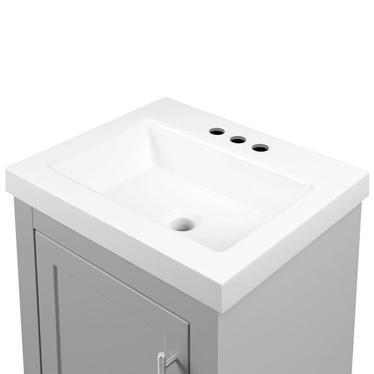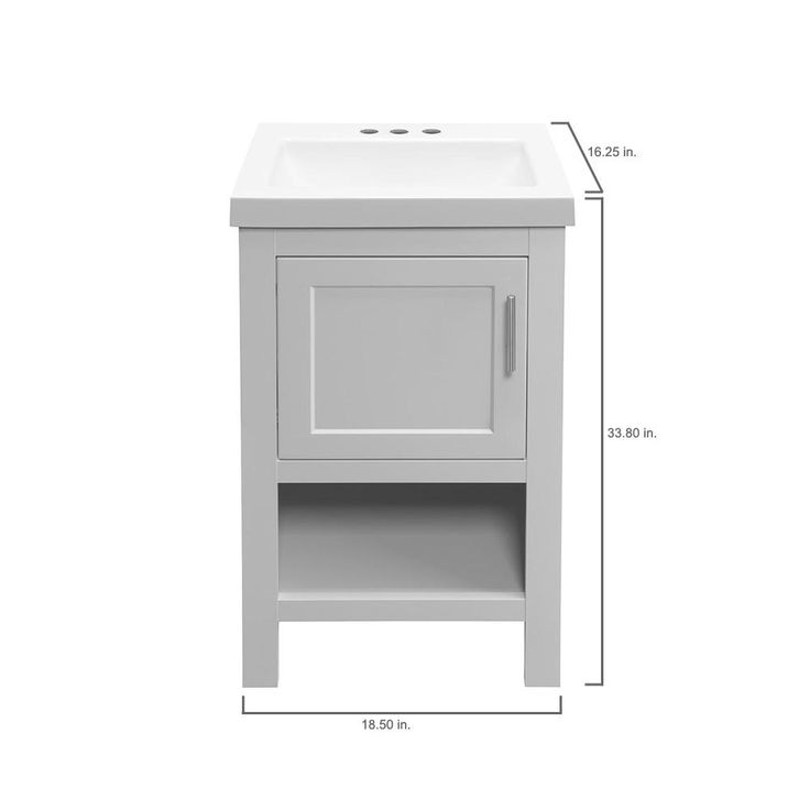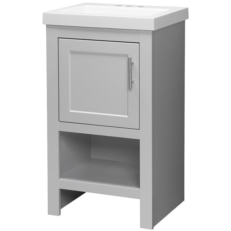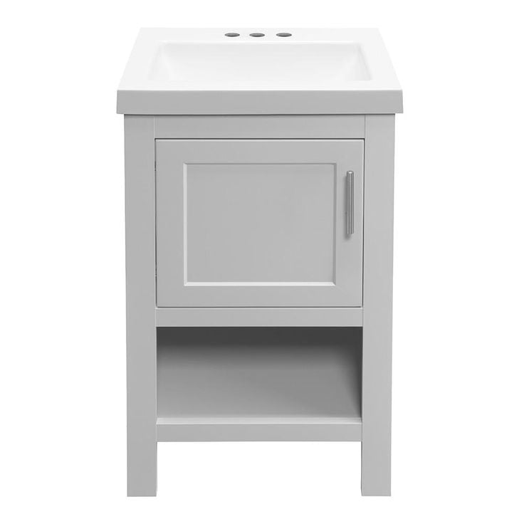 The Glacier Bay Spa 18.5 in. W Vanity in Dove Gray with Cultured Marble Vanity Top in White with White Basin and Mirror has elegant styling that will complement a wide variety of bath or powder room decor. The durable Dove Gray finished cabinet has plenty of storage space for your necessities and features an open cubby. The stain and scratch resistant white cultured marble vanity top has an integral sink and is pre-drilled for a 4 in. spread faucet for simple installation. With decorative accents including the cabinet hardware this vanity is a simple solution to adding functionality and beauty to your decor. The cabinet is fully assembled for easy installation.