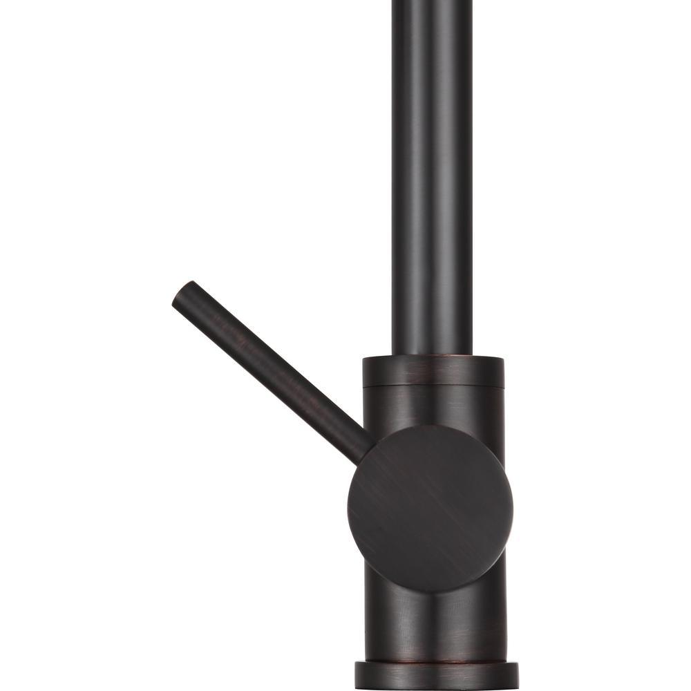 The Farnese faucet sculpts a graceful arc in rich oil-rubbed bronze, bringing refined warmth to contemporary kitchens. Its slender single lever and minimalist silhouette keep the look tailored and chic. Pair it with a matte granite sink and dark stone counters for a moody, luxe composition, letting the matching side sprayer add a professional flourish. This piece is a quiet statement of sophistication—functional glamour for daily living.
