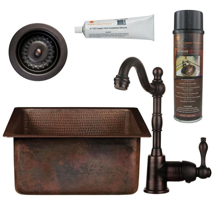 All-in-One Dual Mount Copper 16 in. Square Bar/Prep Sink with Faucet and Strainer Drain in Oil Rubbed Bronze