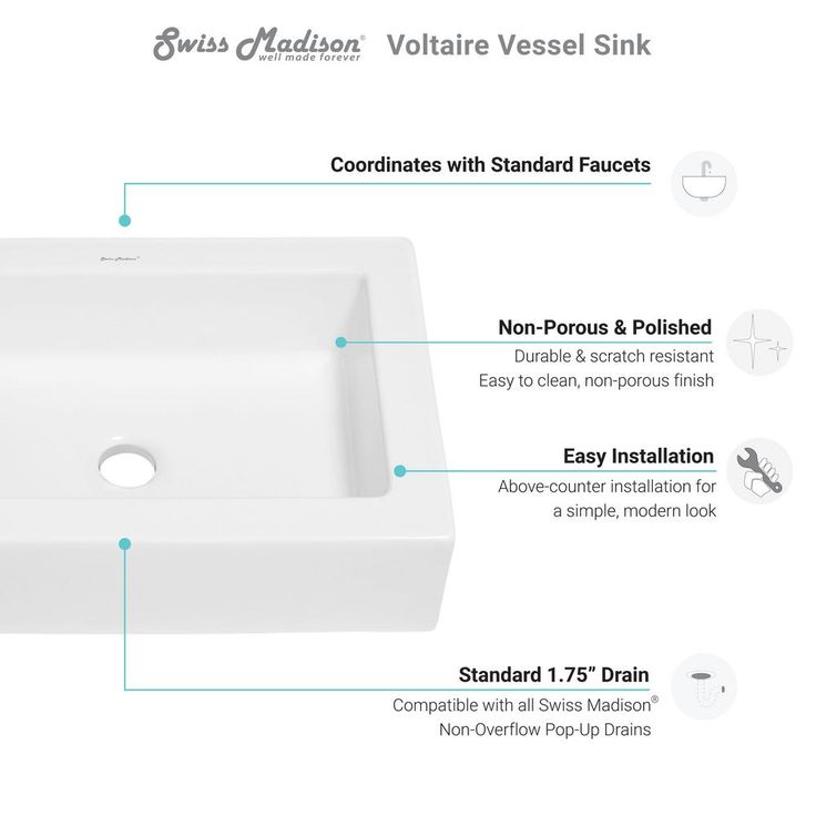 Sleek and contemporary, the Voltaire vessel sink features a fresh look for classic white ceramic, in true minimalist fashion. Striking simple style, while maximizing precious bathroom space, makes above-counter sinks popular for powder rooms. Features smooth baked-on glaze, and non-porous high-gloss finish, for durable scratch-resistant and easy to clean convenience.