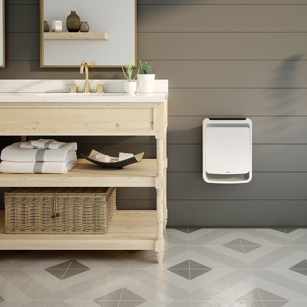 The OASIS bathroom fan heater will provide you with the comfort you deserve while remaining discrete and quiet. It features a highly accurate electronic thermostat and an optimum heat output, which allow you to easily and rapidly control the comfort of your rooms. Also offered without a thermostat, it's the perfect little device to heat small rooms like a vestibule or hallway. In addition, its refined look and its high-performance polymer finish blend in with any decor.