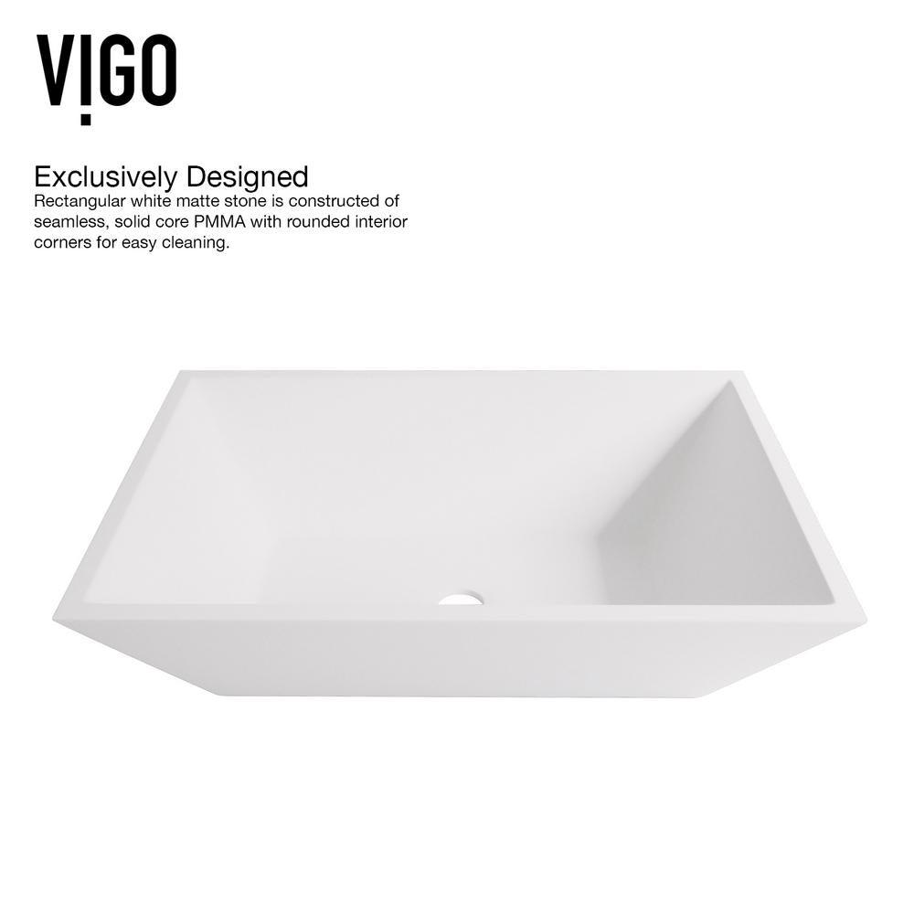 • Matte Stone: proprietary to the VIGO brand, Matte Stone is a seamless, solid-core composite that resists scratches, impact and discoloration
