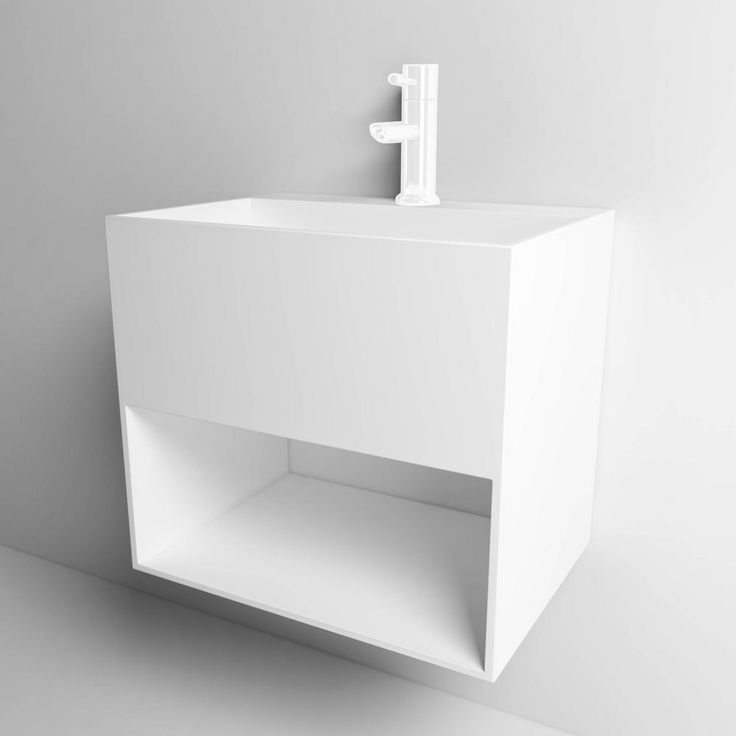 • One piece solid surface/stone resin vanity, basin and shelf combo