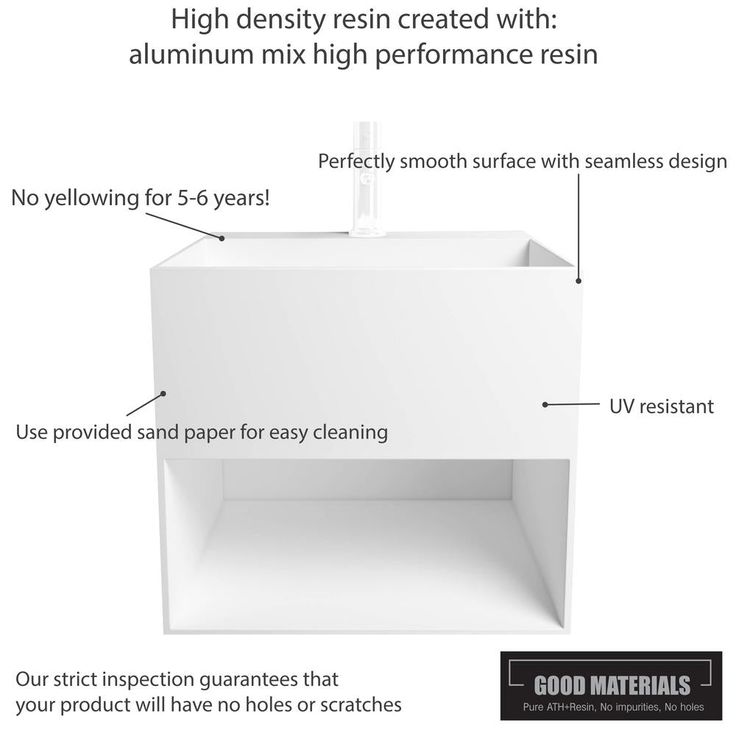 The Dyconn Faucet Solid Surface Vanity will have a perfectly smooth surface with a seamless design. Made with highest density composite resin (artificial marble or Quartz), this vanity is 30 times stronger than acrylic and will not take up much space with it's wall mounted free-floating installation design. Solid surface is easy to maintain and clean and this product includes a sand sponge for deep cleaning. This Dyconn Faucet solid surface vanity is a great addition for any modern bathroom.