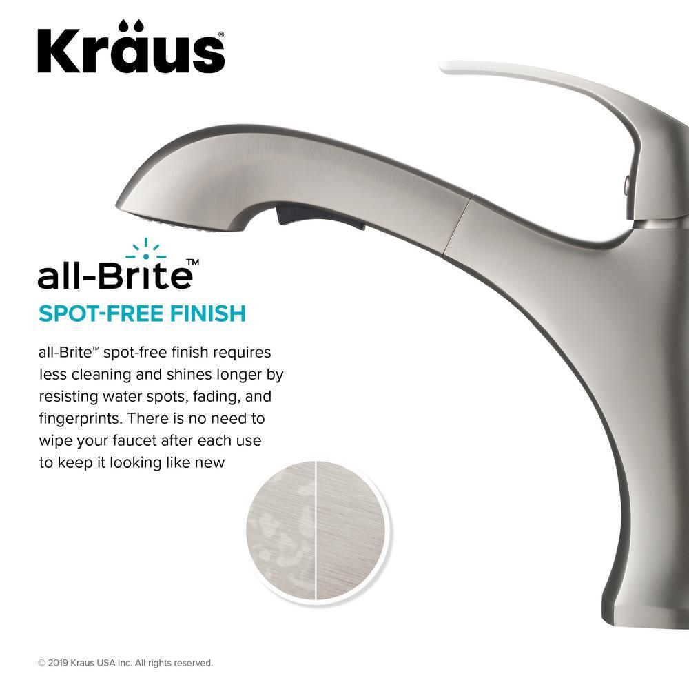 • Spot-free finish: all-Brite spot free stainless steel finish resists water spots and fingerprints for a cleaner looking faucet