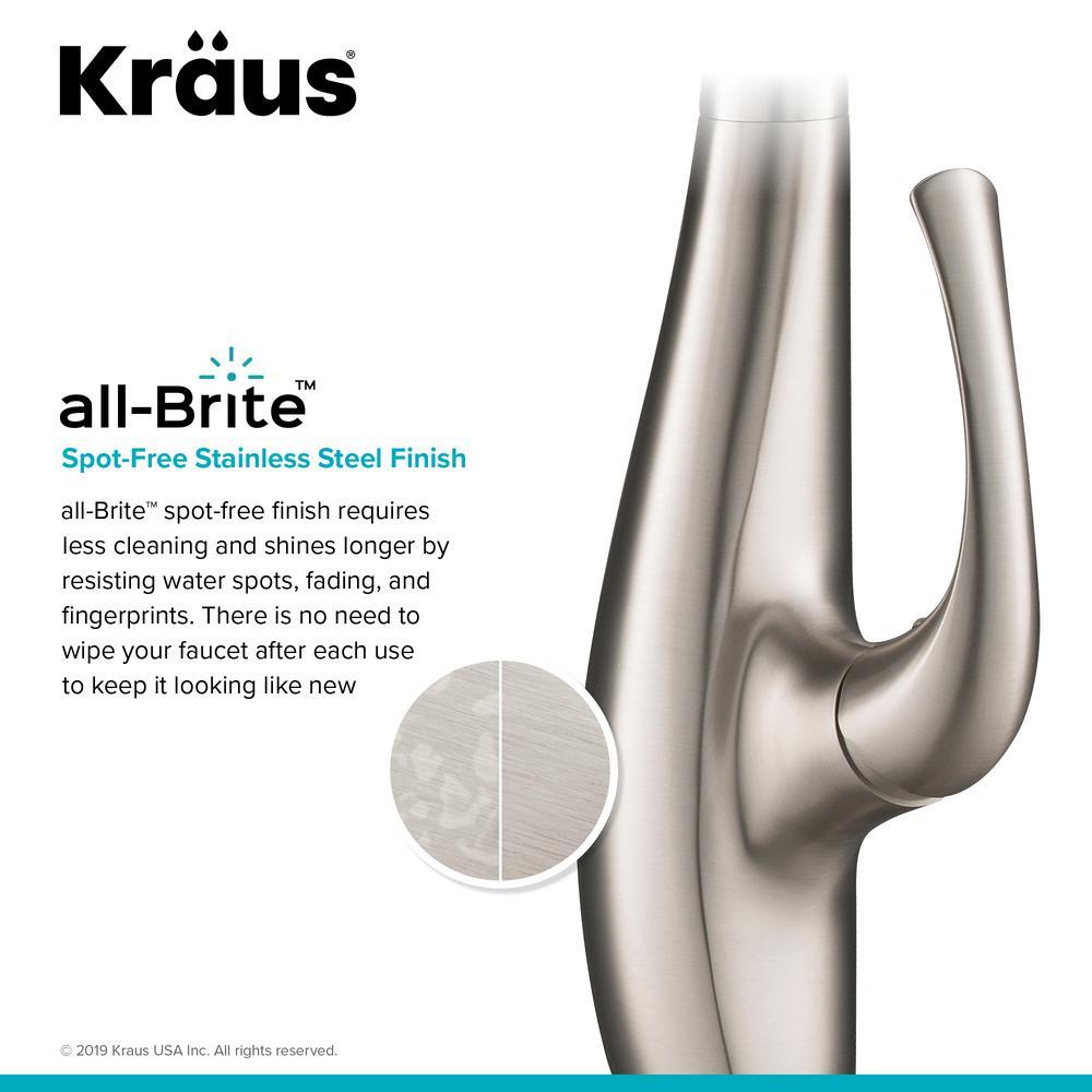 • Spot-free finish: all-Brite spot free stainless steel finish resists water spots and fingerprints for a cleaner looking faucet