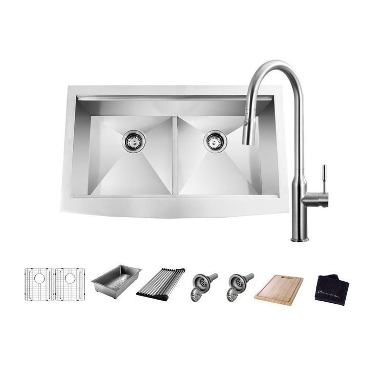 All-in-One Apron-Front Farmhouse Stainless Steel 33 in. 50/50 Double Bowl Workstation Sink with Faucet and Accessories