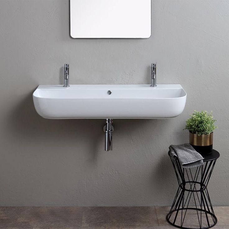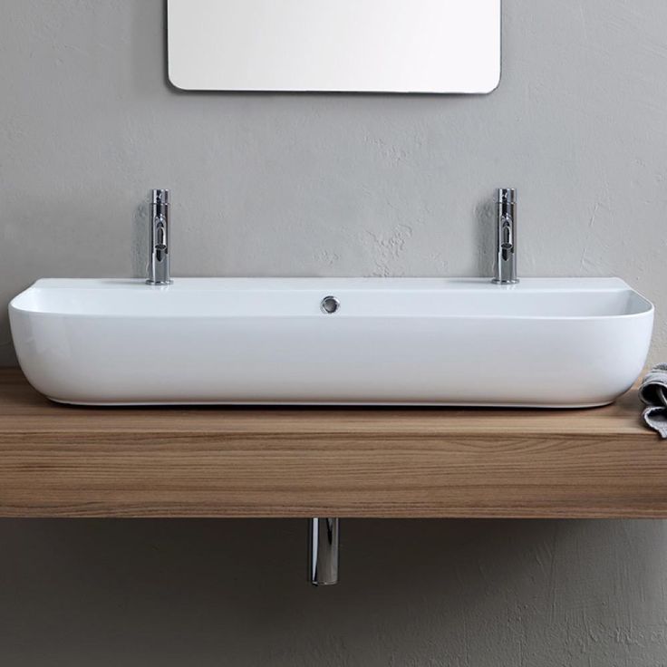 Perfect for the modern or contemporary bathroom atmosphere, this 37.5 inch bathroom sink is made from built-to-last white ceramic with an ultra thin edge. This sink can be used as a wall mounted sink or a vessel sink and features two pre-drilled faucet holes. Made in Italy by Scarabeo and part of the Glam collection.